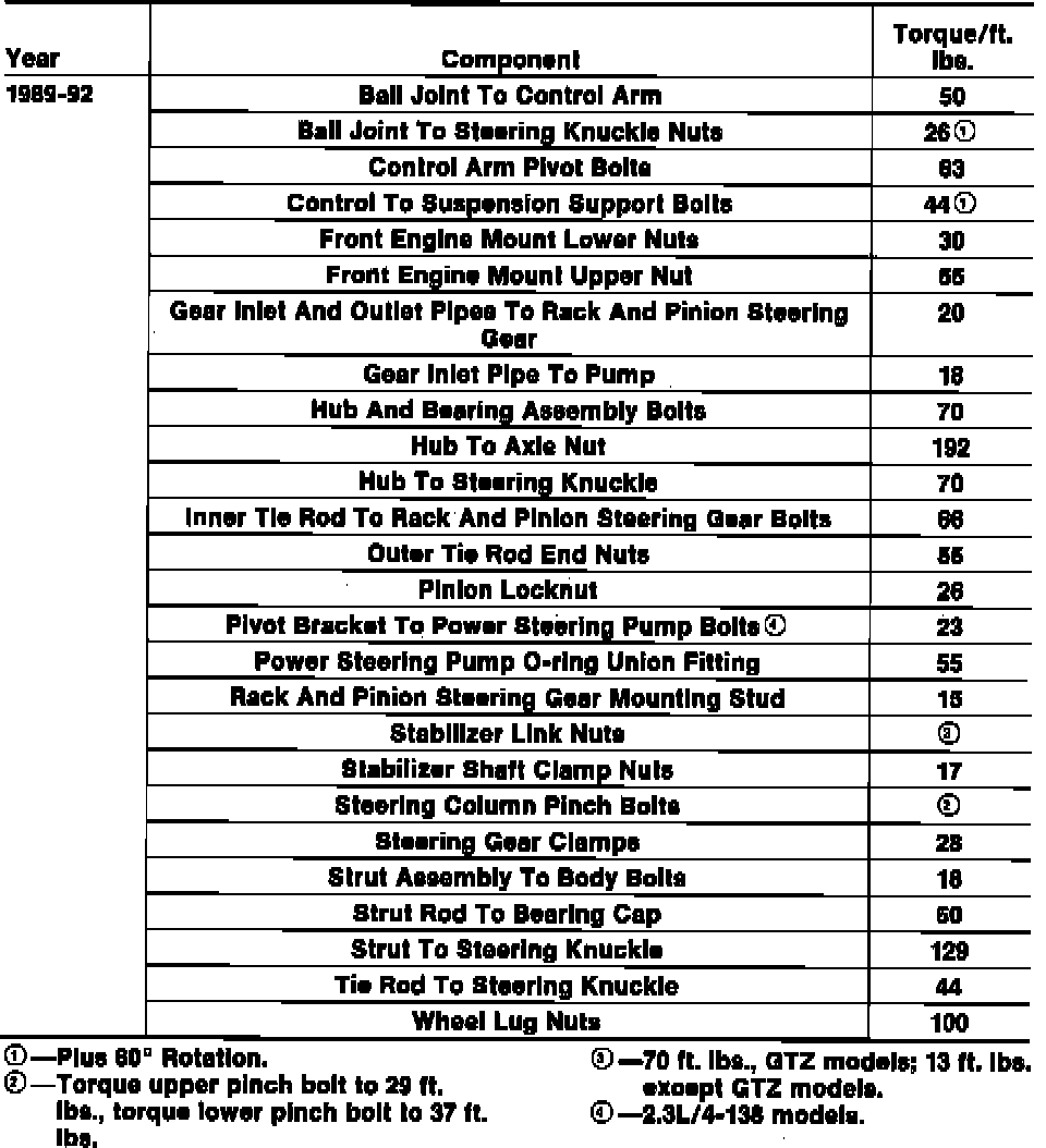 Tightening Specifications: