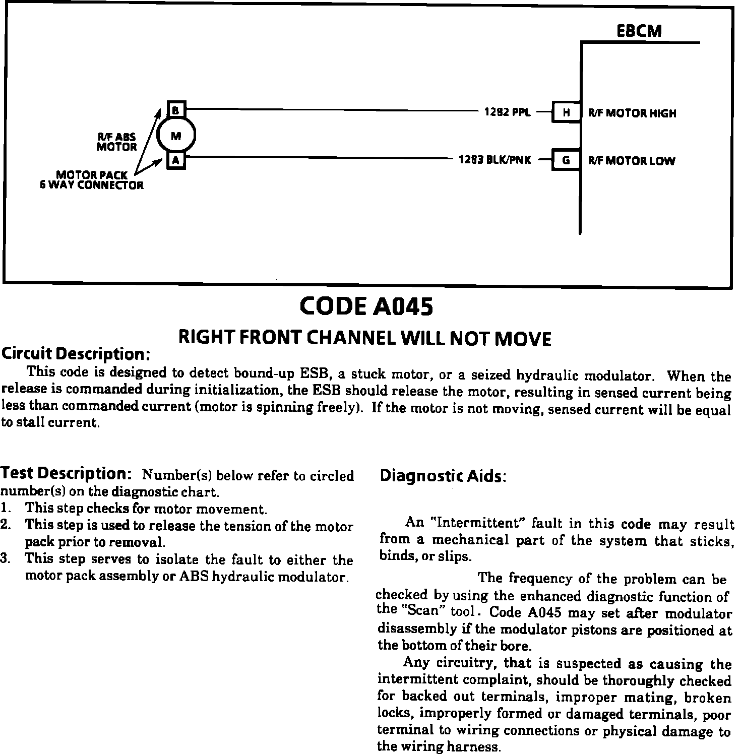 Fig. 45 Code A045, Right Front EMB Will Not Release Motor Or Gears Frozen.: