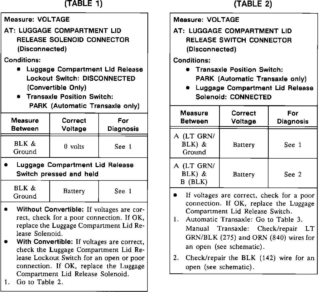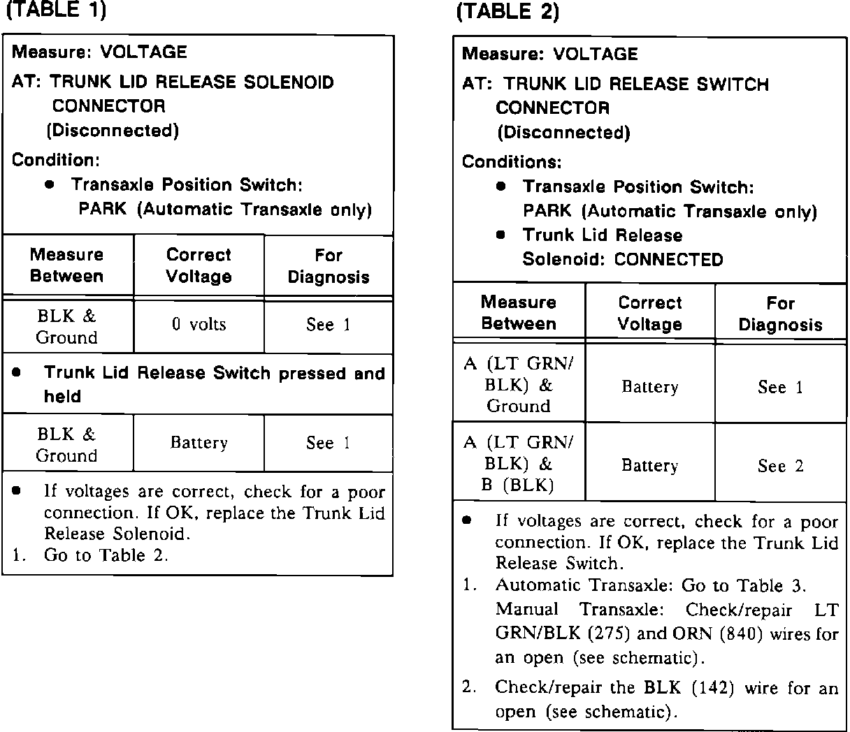 Trunk Lid Release Test (Tables 1 And 2):