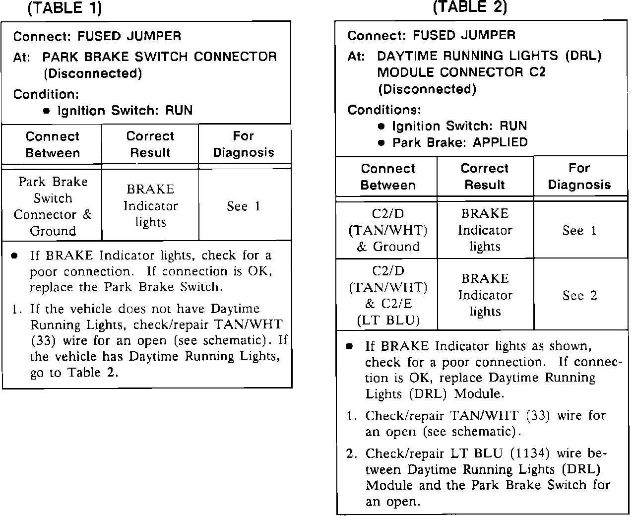 Test B: Brake Indicator Lights With The Ignition Switch In Bulb Test, But Does Not Light With The Park Brake Applied: