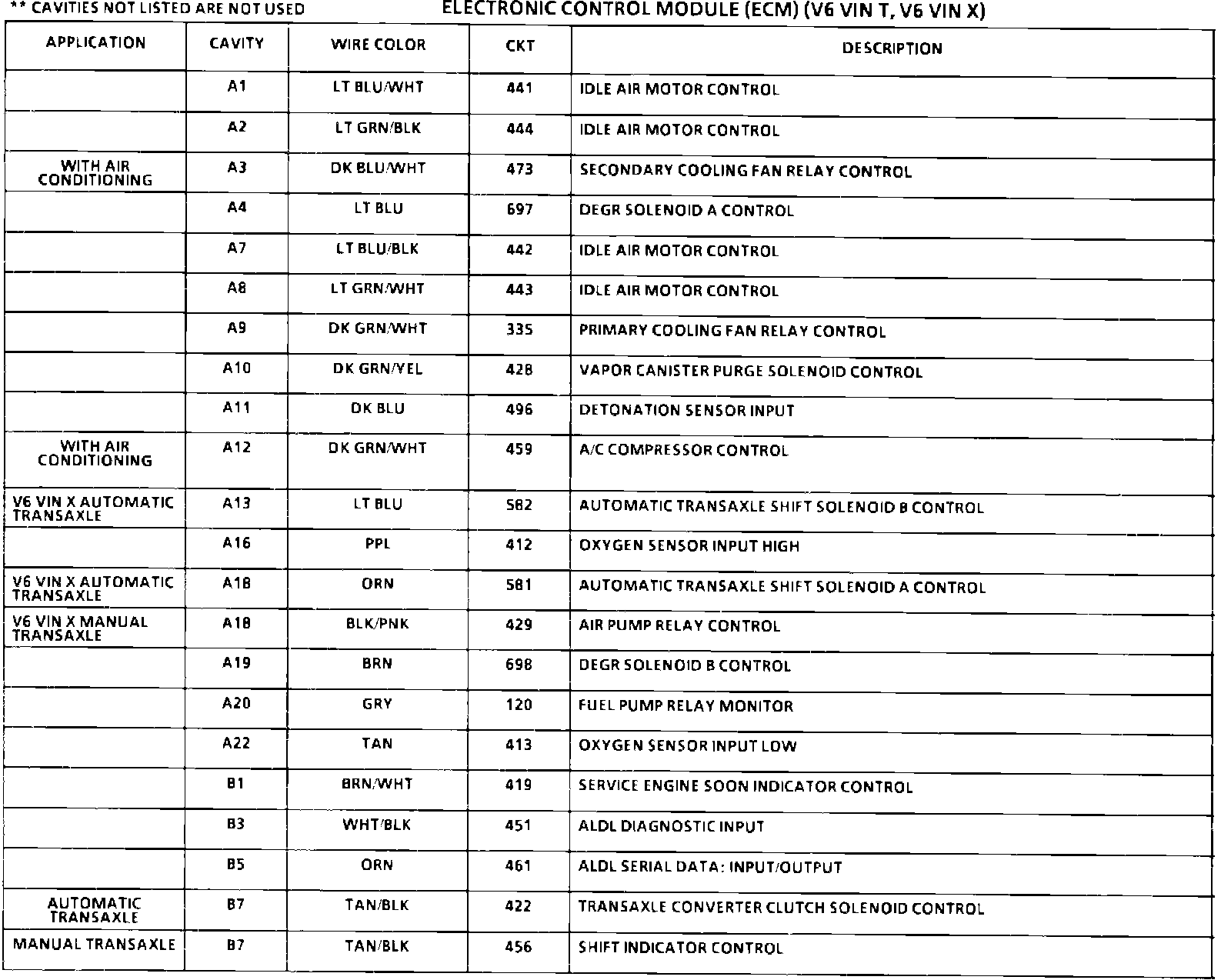 Electronic Control Module (ECM) Connector Faces: