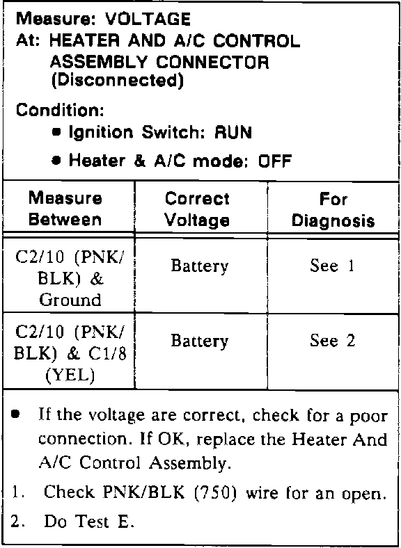 Test F: Heater And A/C Control Assembly Blower Control Test:
