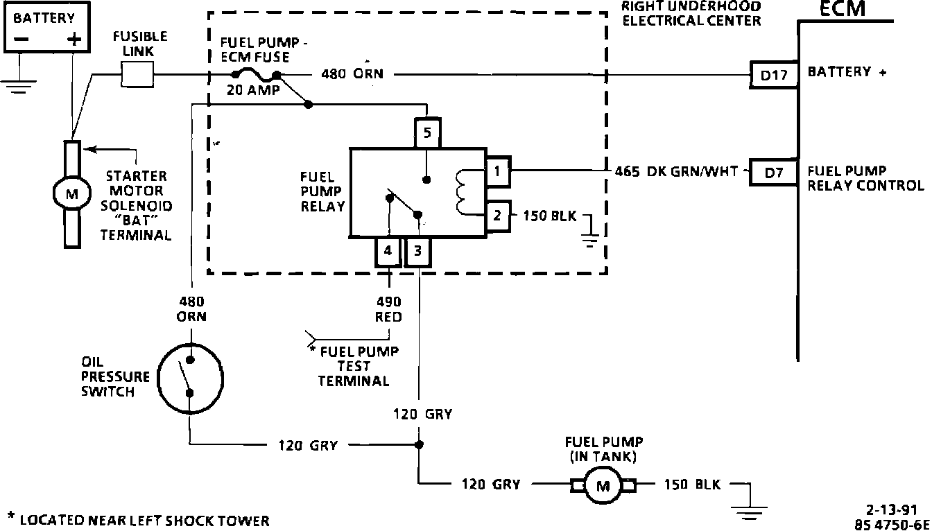 The fuel pump can be turned ON by the oil pressure switch. The oil pressure switch is a normally open switch which closes when oil pressure reaches about 28.0 kPa (4.0 psi). If the fuel pump relay fails, the oil pressure switch will power the fuel pump.