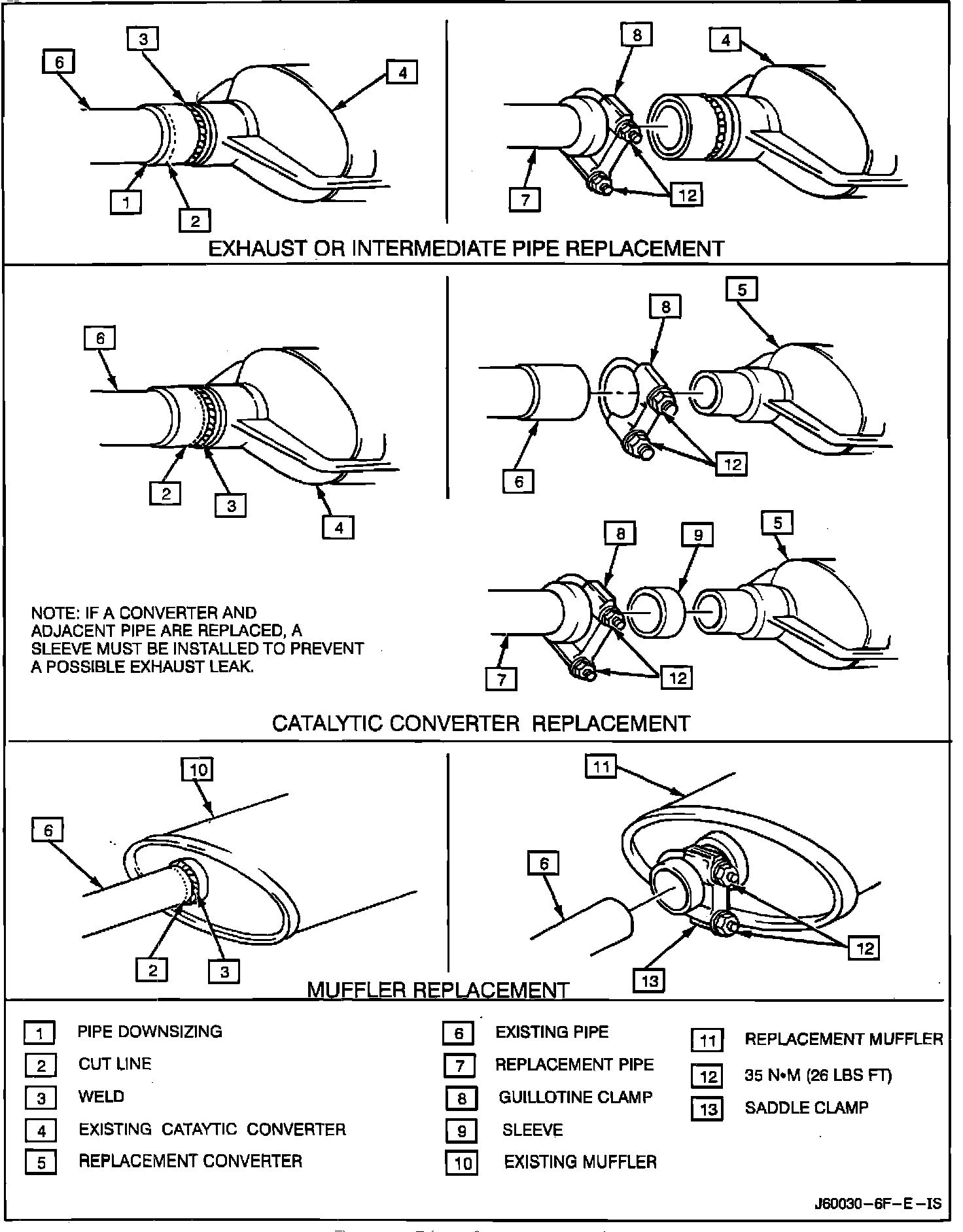 2. Cut front exhaust pipe at the converter as shown in the figure. Cut as close to the weld as possible.