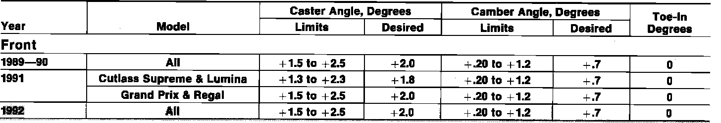 Front Alignment Specifications