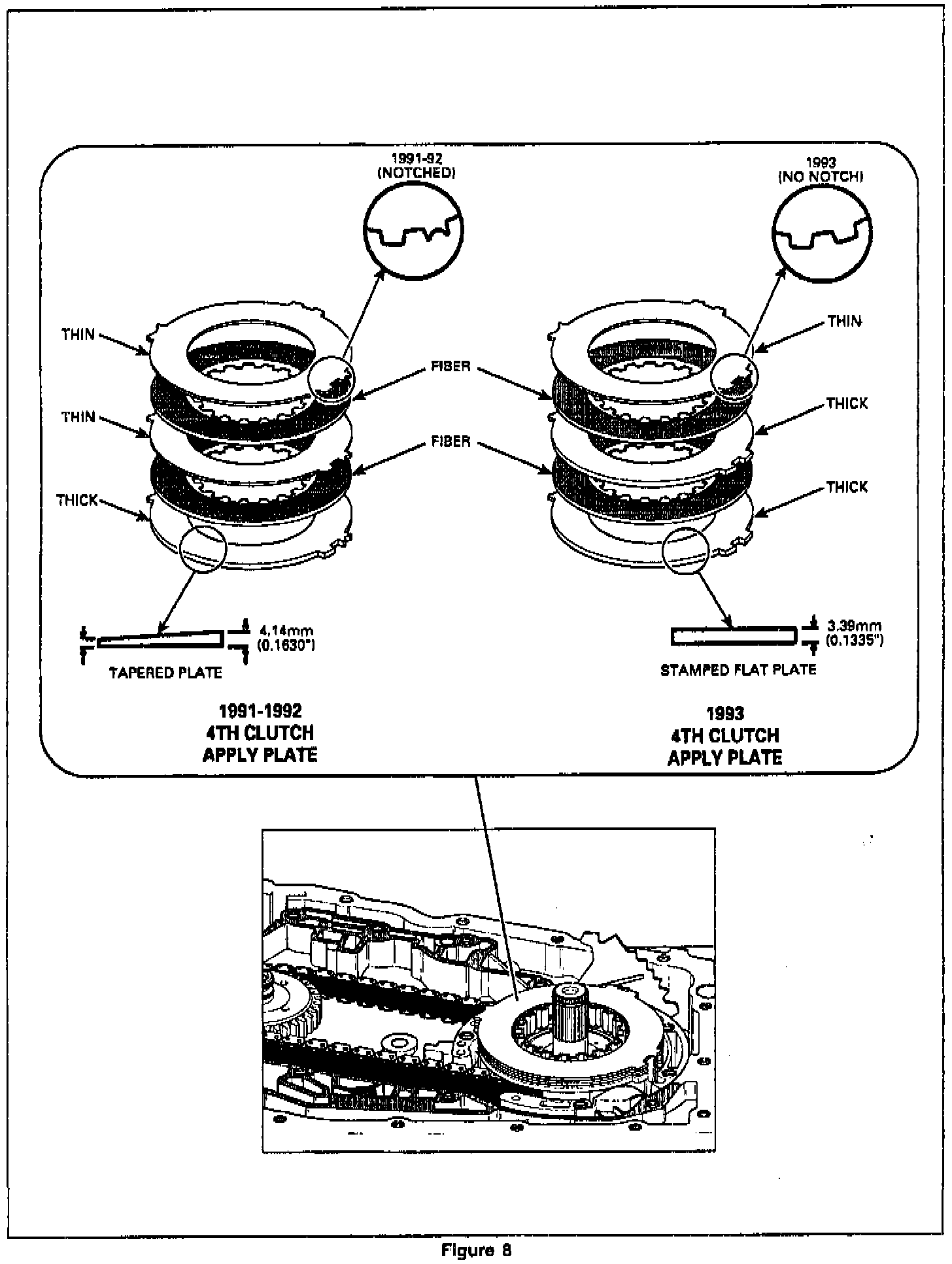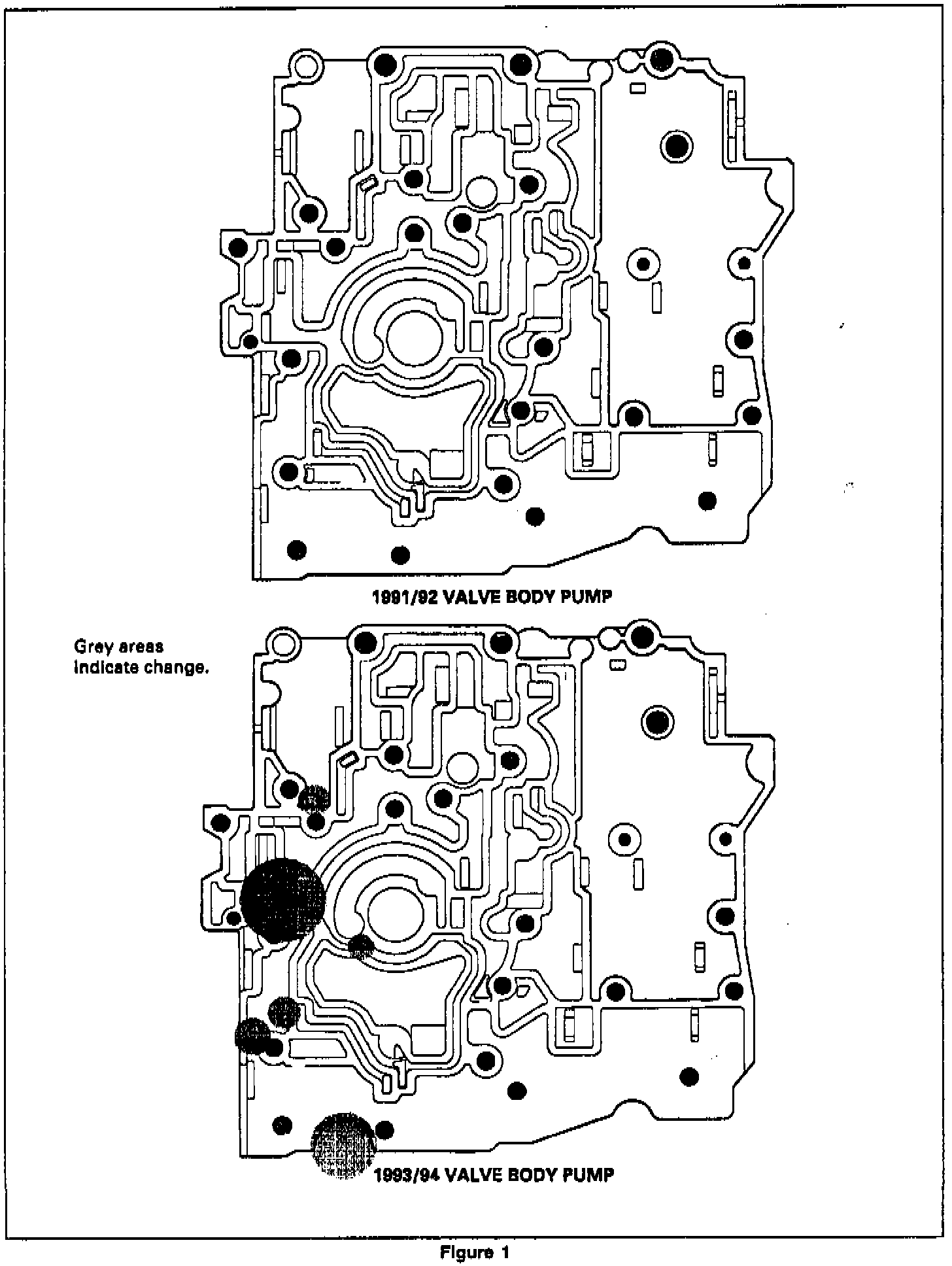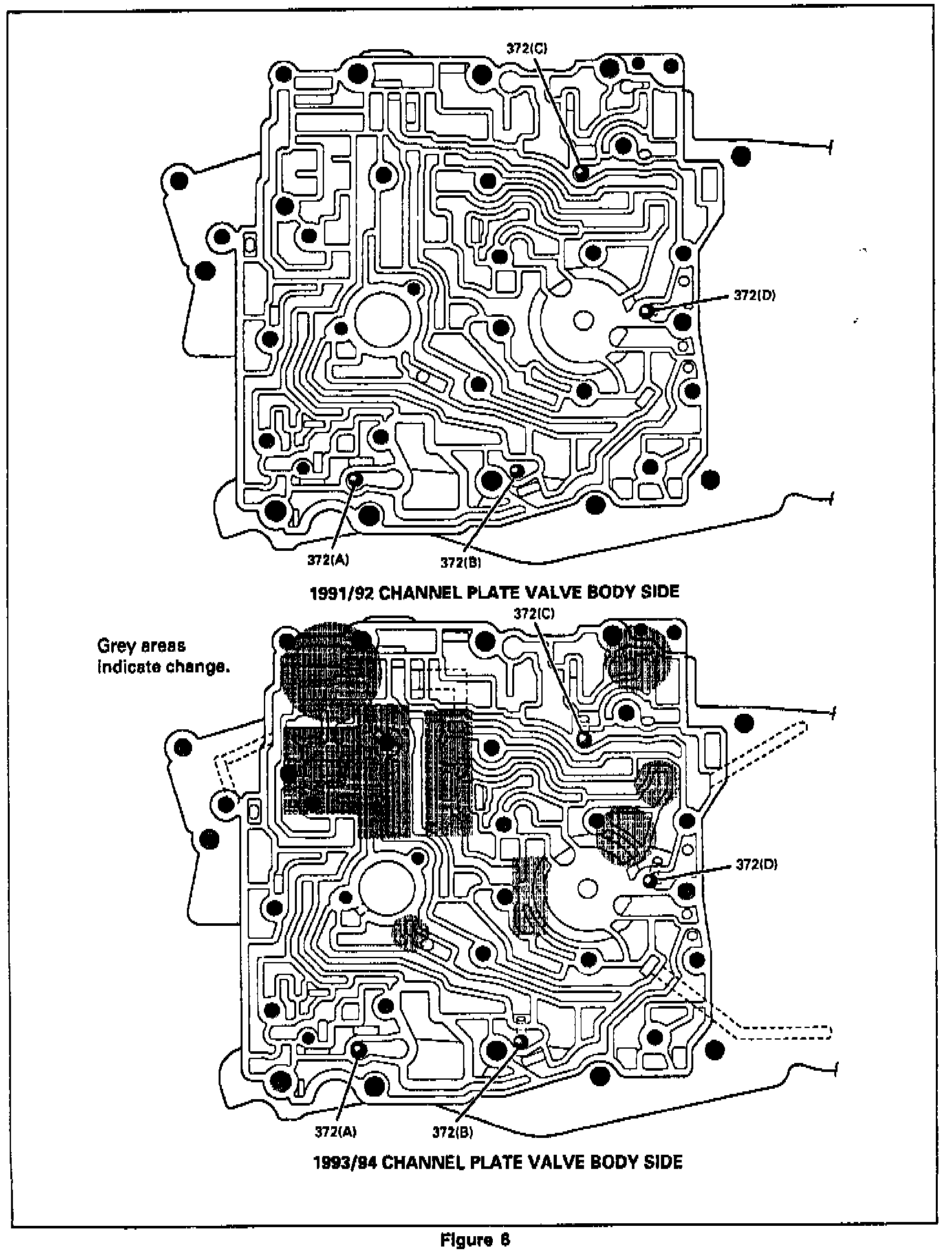 Whenever servicing a 4T60-E transaxle, compare and verify the components listed above that are removed are identical to the new replacement components before reinstalling. See Figures 1 through 9 for component revisions between 1991-92 and 1993-94.