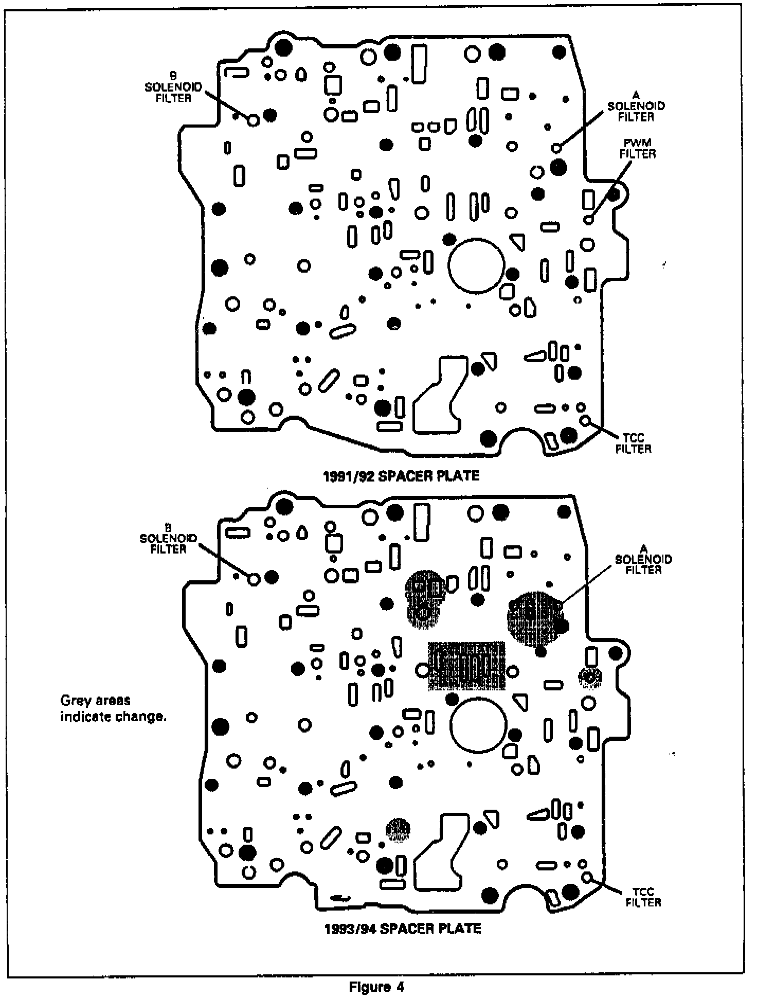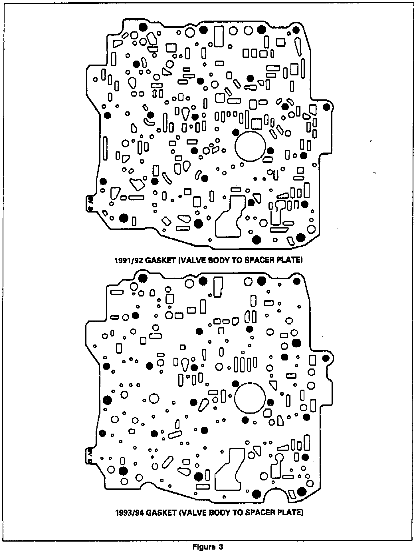 1991-92 and 1993-94 model components listed above should NOT be mixed on a transaxle during service. For example, using a 1991-92 Valve Body Gasket on a 1993-94 4T60-E transaxle (or vice versa) will cause the transaxle to have soft shifts, slipping and will eventually burn clutches within a short period of time or mileage.