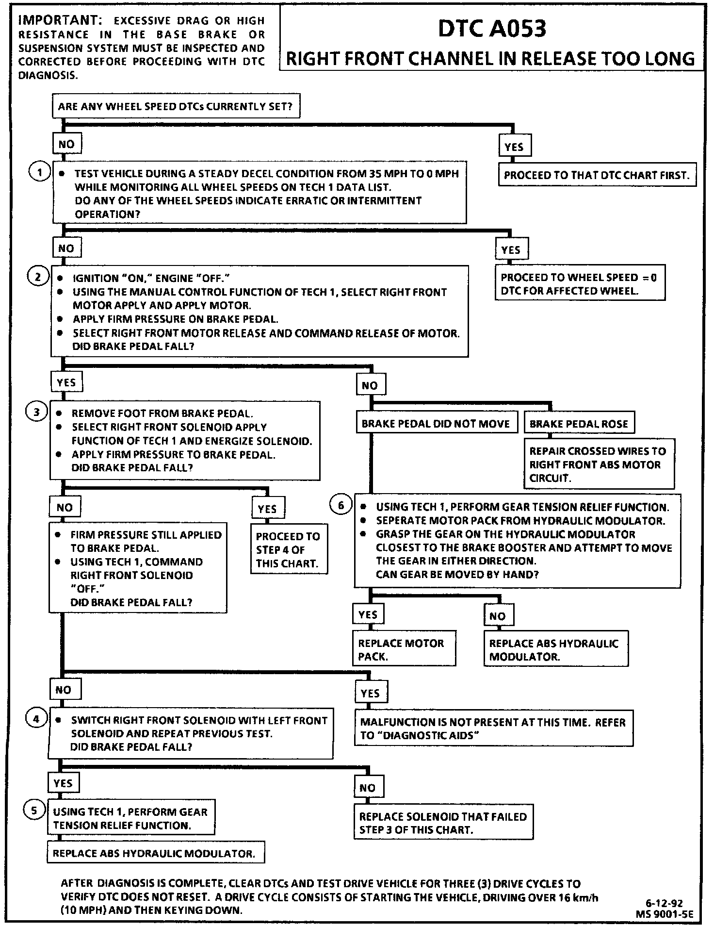 The frequency of the malfunction can be checked by using the enhanced diagnostic function of the Tech 1. DTC A053 may fail on ice if steering wheel is turned to lock during braking. Using Tech 1 perform Hydraulic test to ensure total brake system is functional.