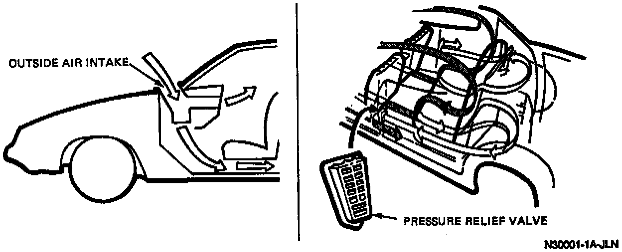 This vehicle has a "flow-through" ventilation system. A supply of outside air ("ram" air) flows into the vehicle when the blower motor is running.