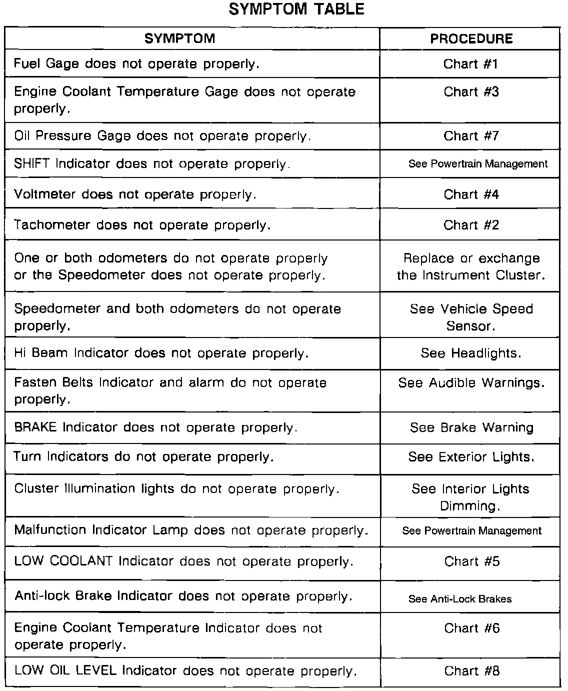 A Symptom Table - Gauge Cluster