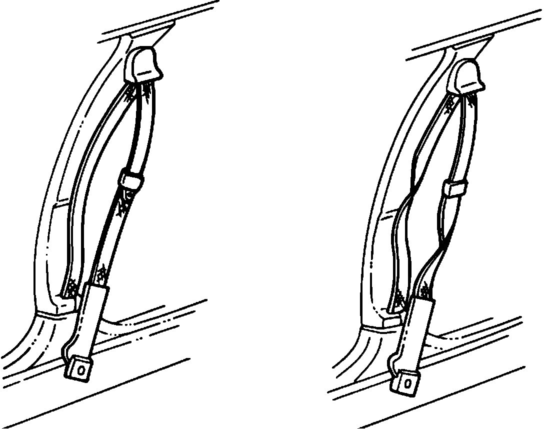 A twist in the webbing of the front seat belt may occur between the retractor and the guide loop or between the guide loop and the lap belt anchor plate.