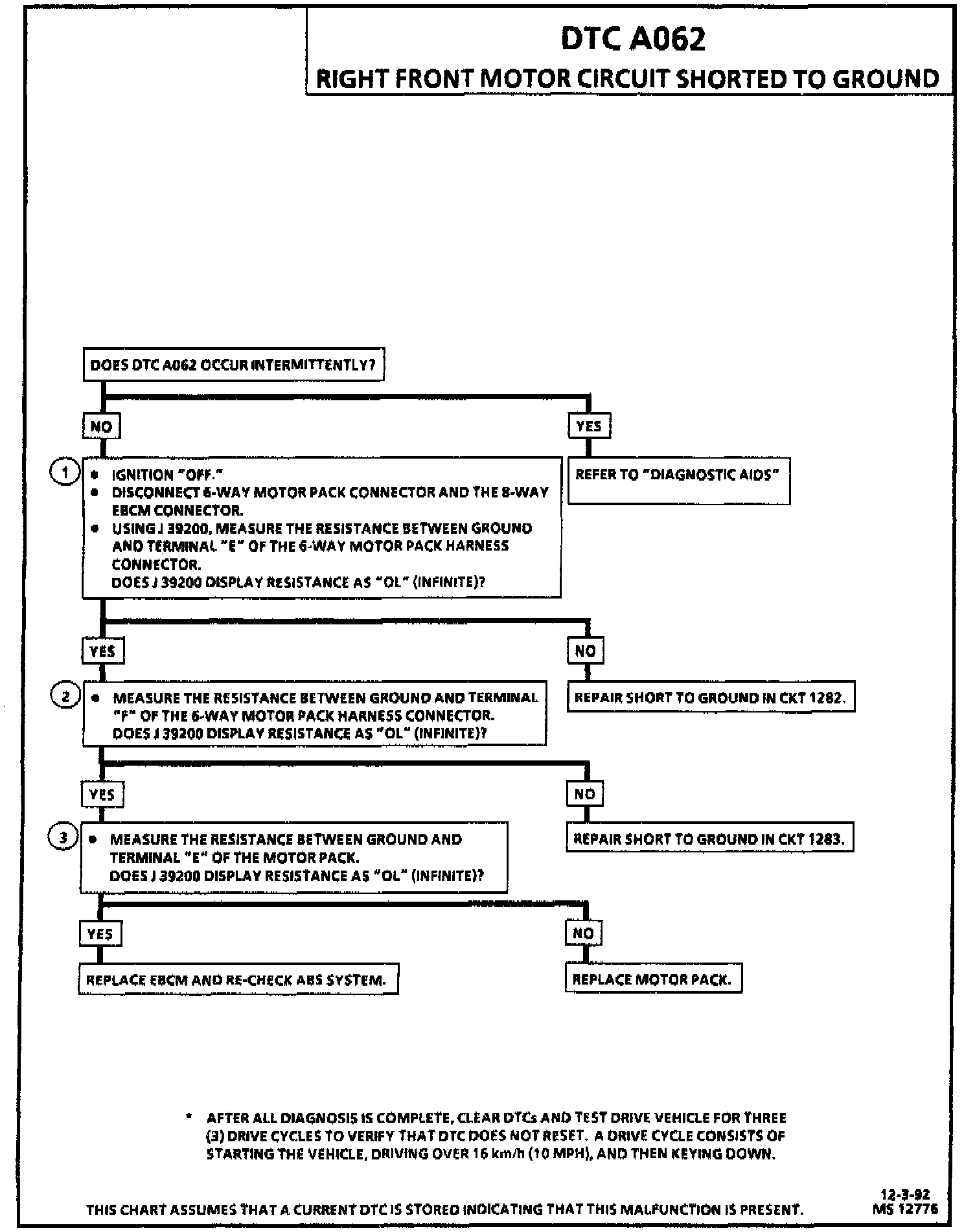 DTC A062 can be set anytime. If the EBCM detects an out of range voltage on either of the right front motor circuits indicating a circuit shorted to ground, a malfunction exists.