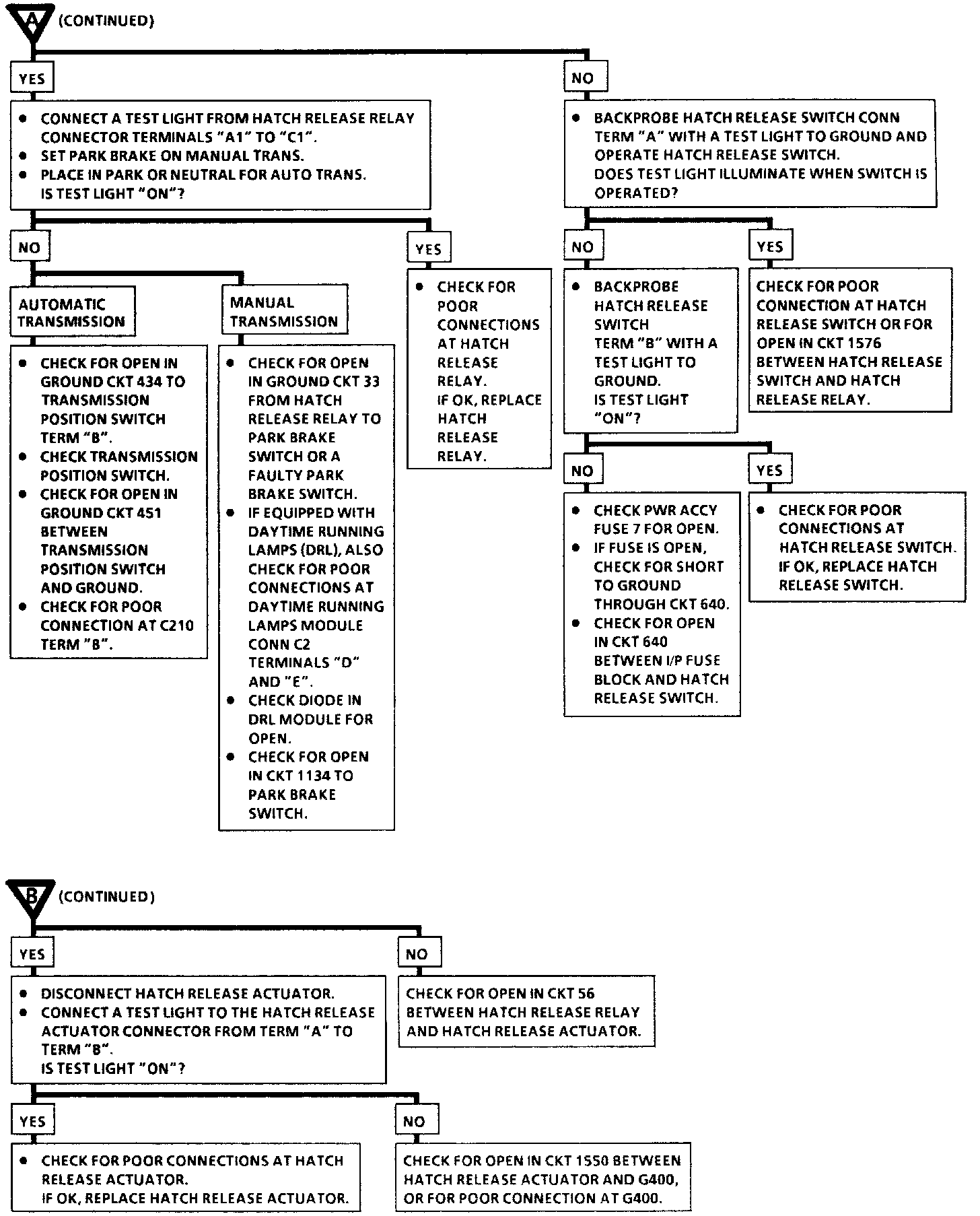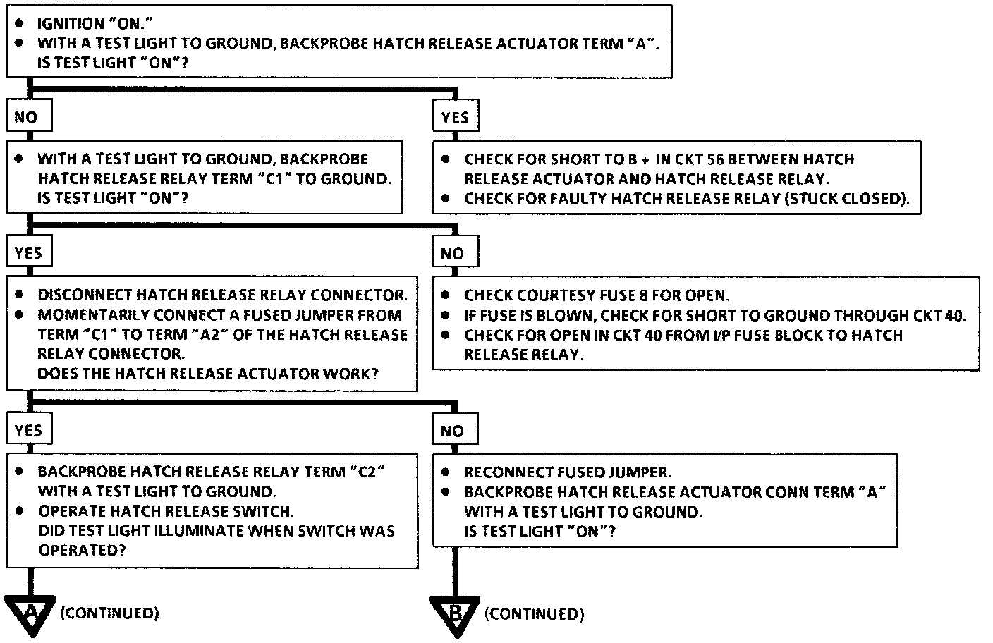 Chart #1 Hatch Does Not Release When Operating The Hatch Release Switch Cont.: