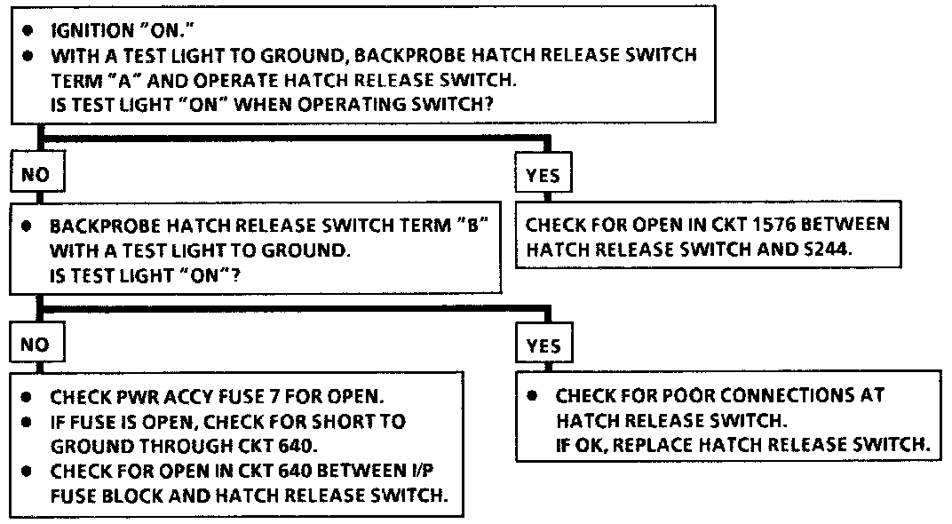 Chart #2 Hatch Release Operates From Keyless Entry & Does Not Operate From Hatch Release Switch: