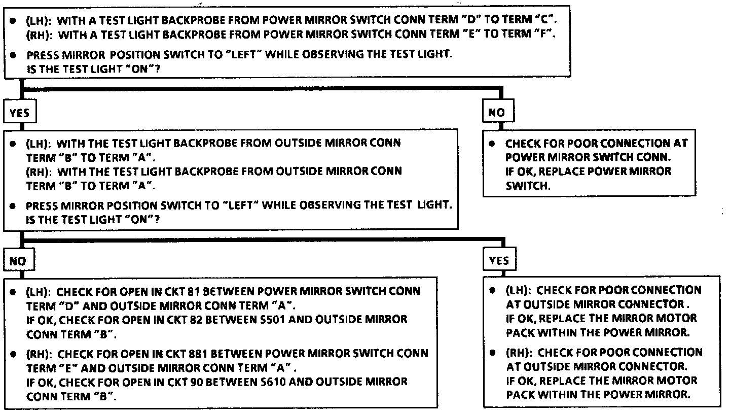 Chart #3: One Mirror Will Not Operate Left/Right, Up/Down Mode Operates Normally: