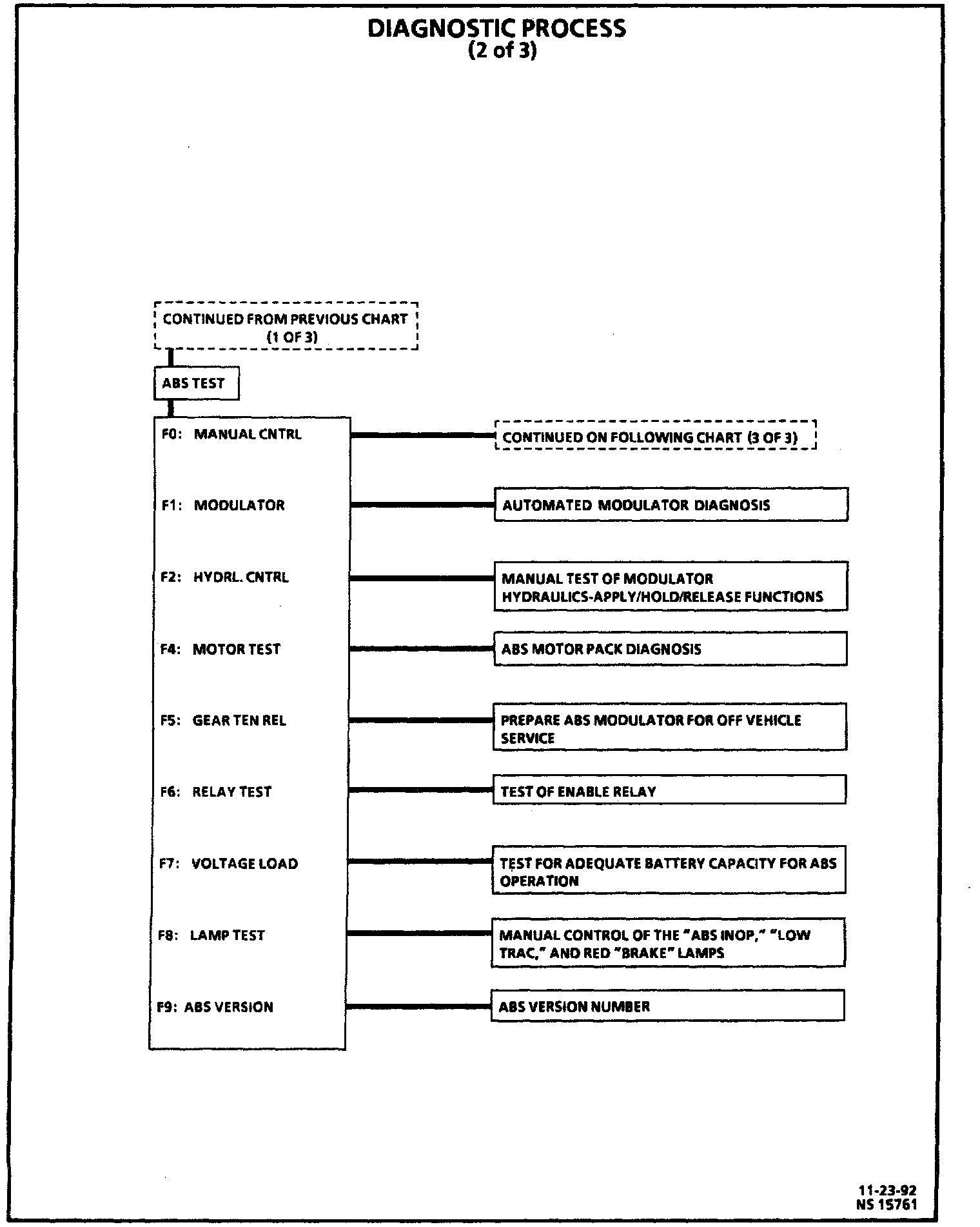 4. If no codes are present, or no mechanical component malfunctions are present, perform the "Modulator Test" using the Tech 1 or T-100 to isolate the cause of the problem.