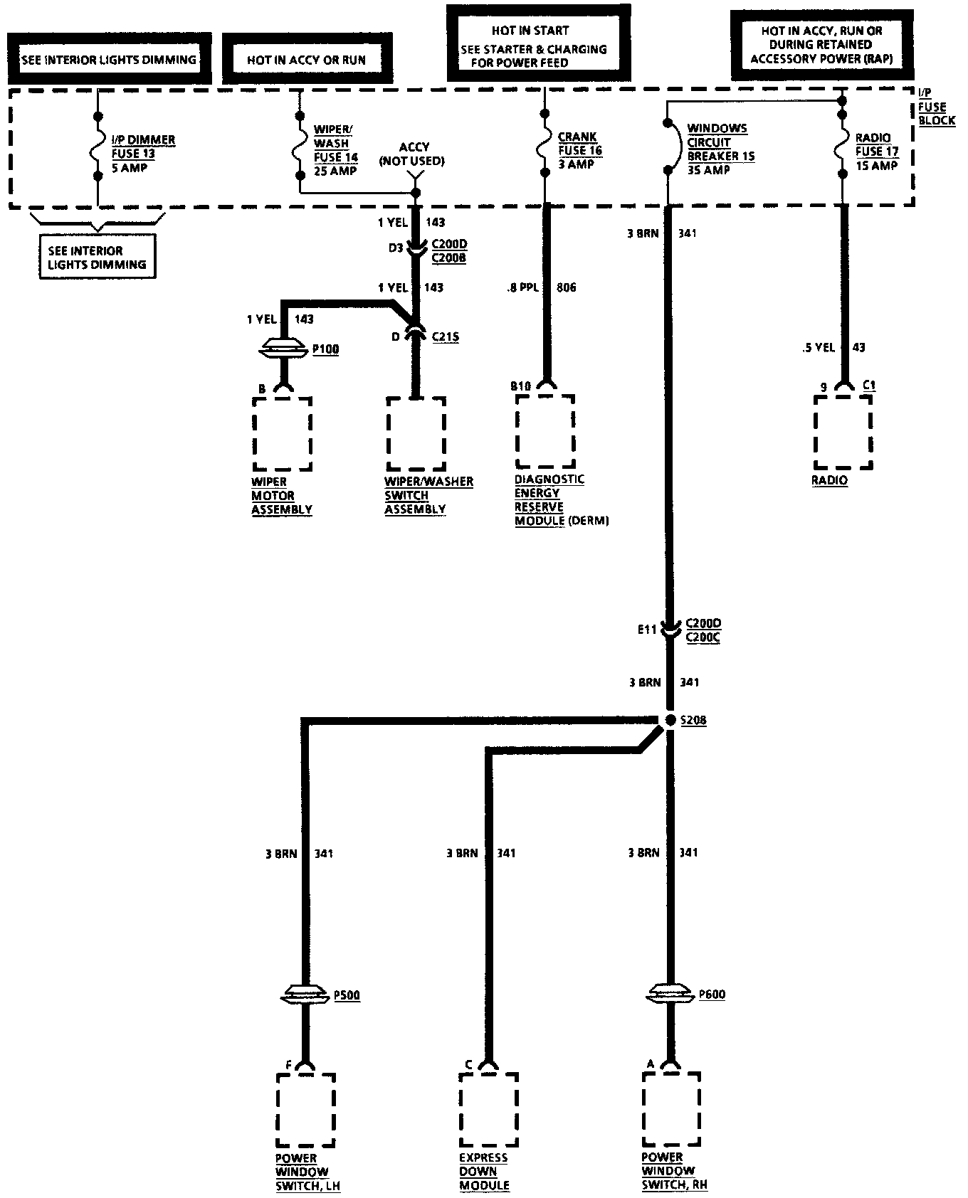 Fuse Block Details: I/P Fuses 14, 16, 17 & Windows Circuit Breaker: