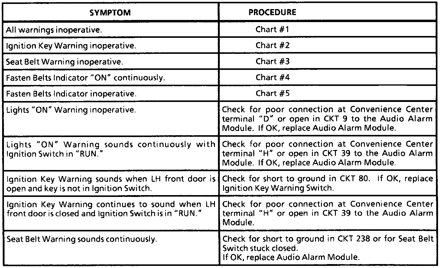 Symptom Table
