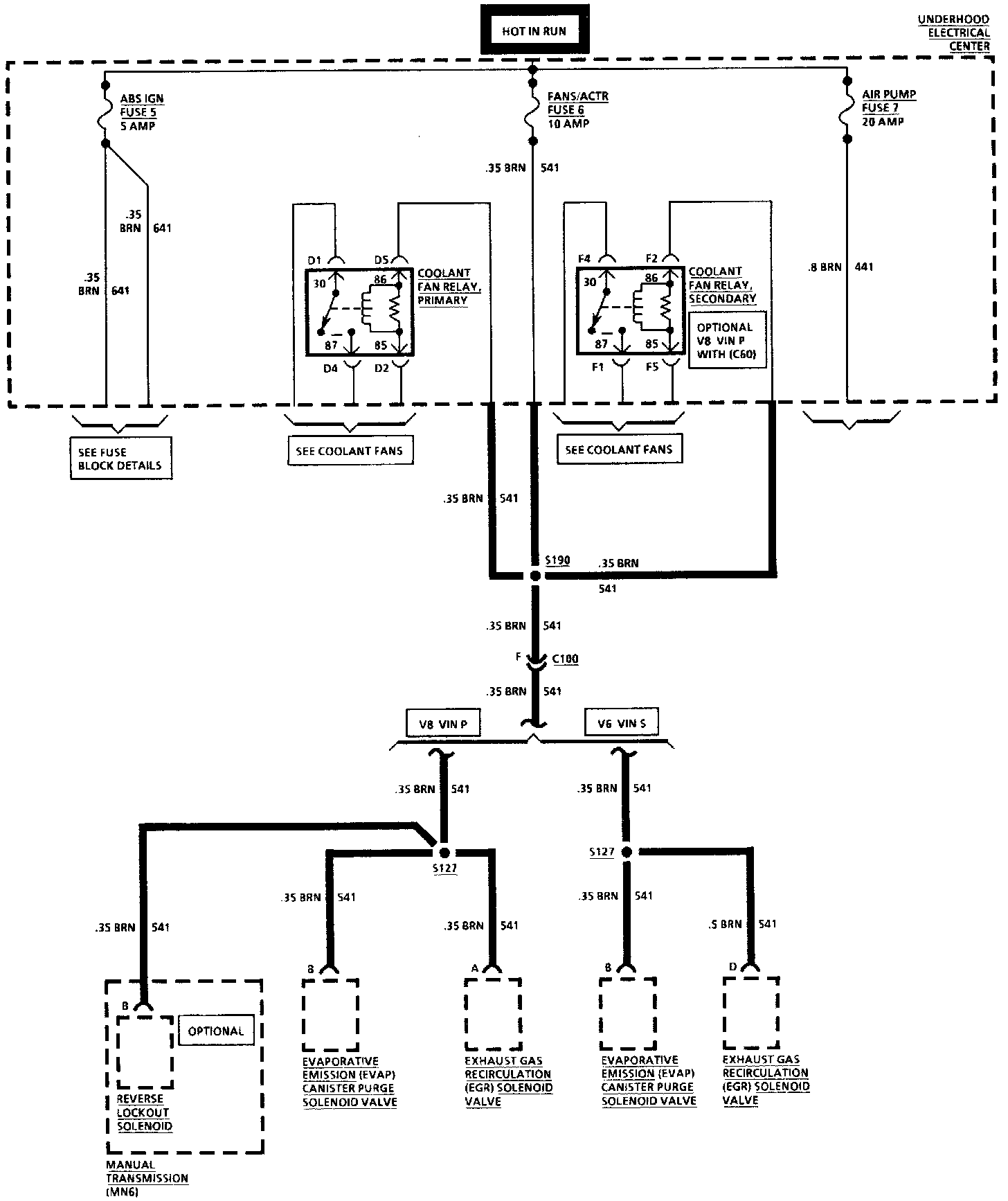 Underhood Fuse 6, Primary Coolant Fan Relay, Secondary Coolant Fan Relay & Low Coolant Relay: