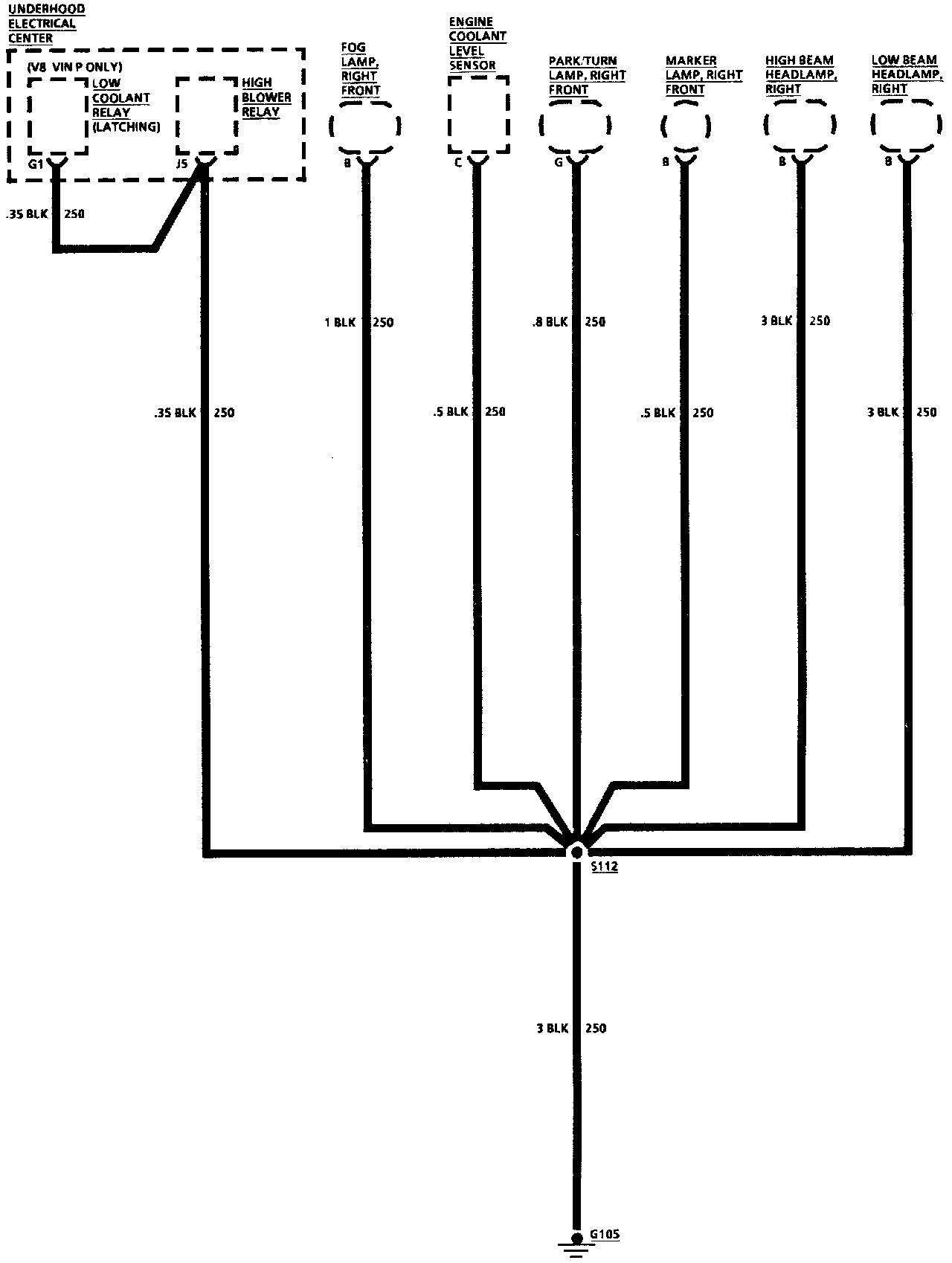 Ground Distribution: Coolant Level Sensor, Forward Lamp & High Blower Relay: