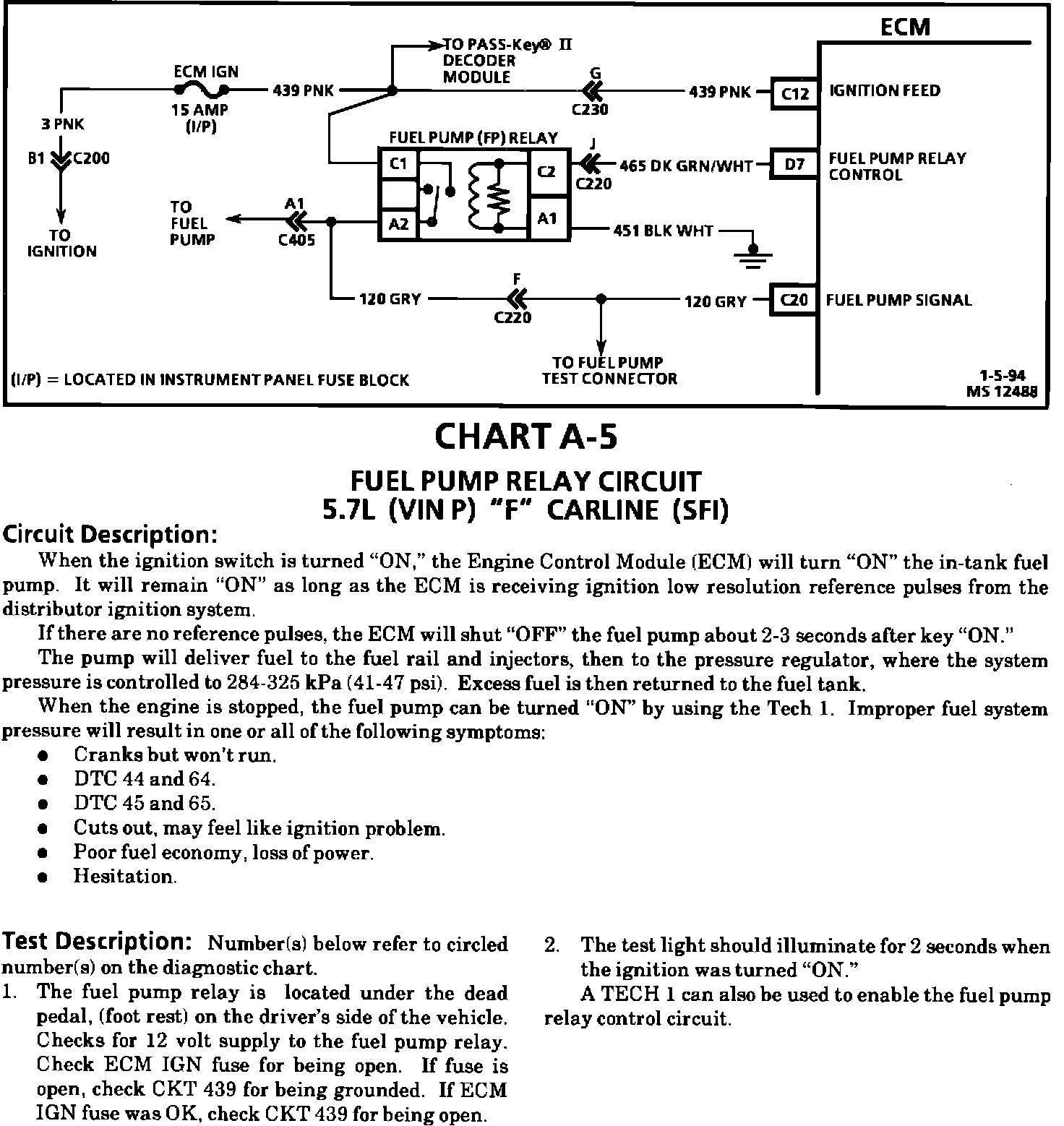 Section 6E3-A, Chart A-5 Fuel Pump Relay Circuit