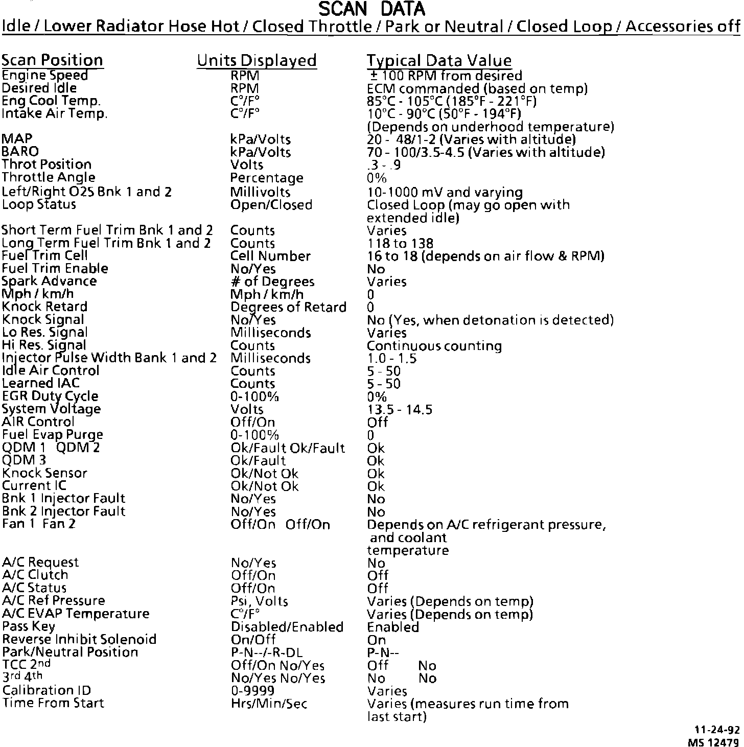 Typical Scan Tool Data Values: