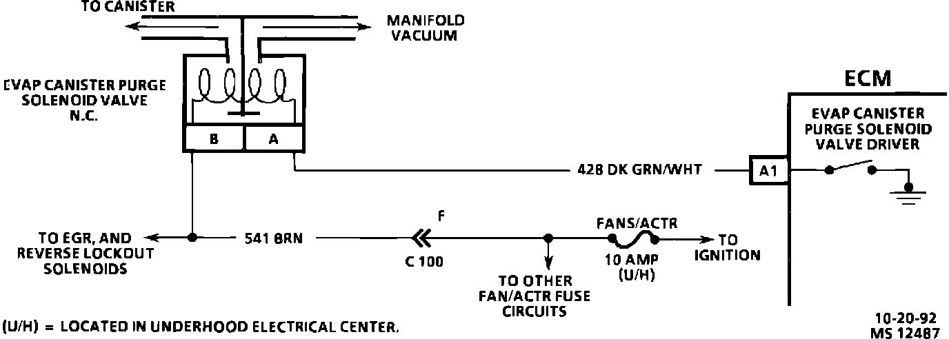 3. Checks for a complete circuit. Normally, there is ignition voltage on CKT 541 and the ECM provides a ground on CKT 428. A shorted solenoid valve could cause an open circuit in the ECM.