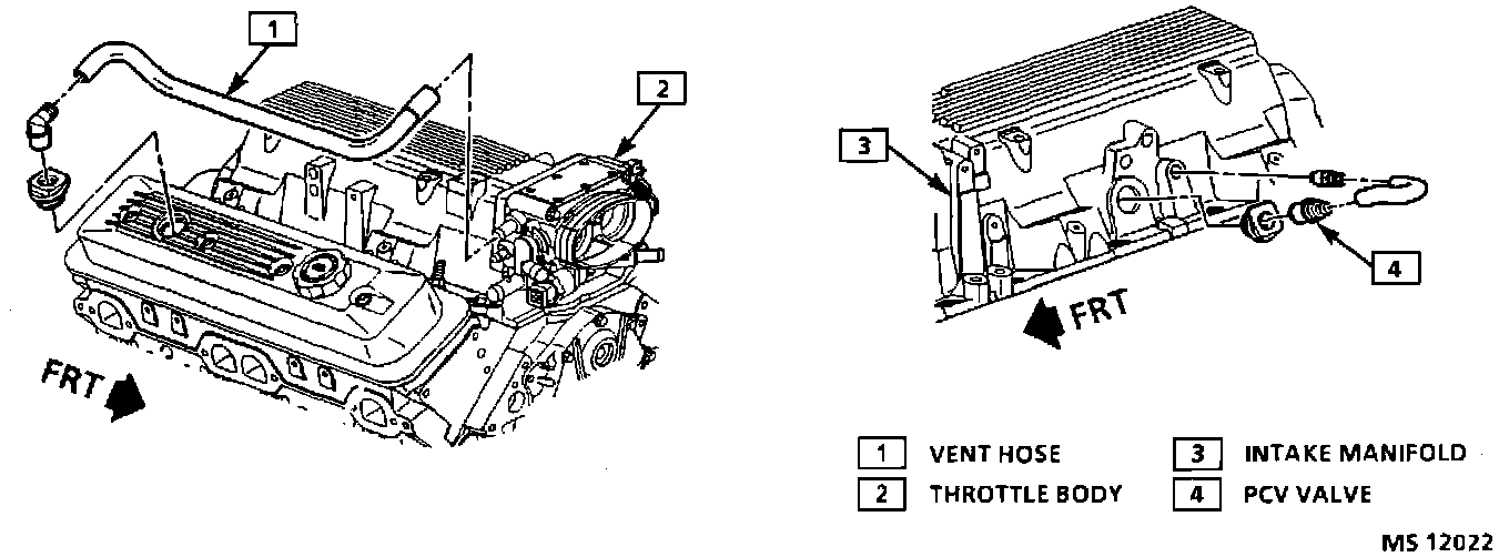 If an engine is idling rough, check for a clogged PCV valve or plugged hose. Replace as required. Use the following procedure: