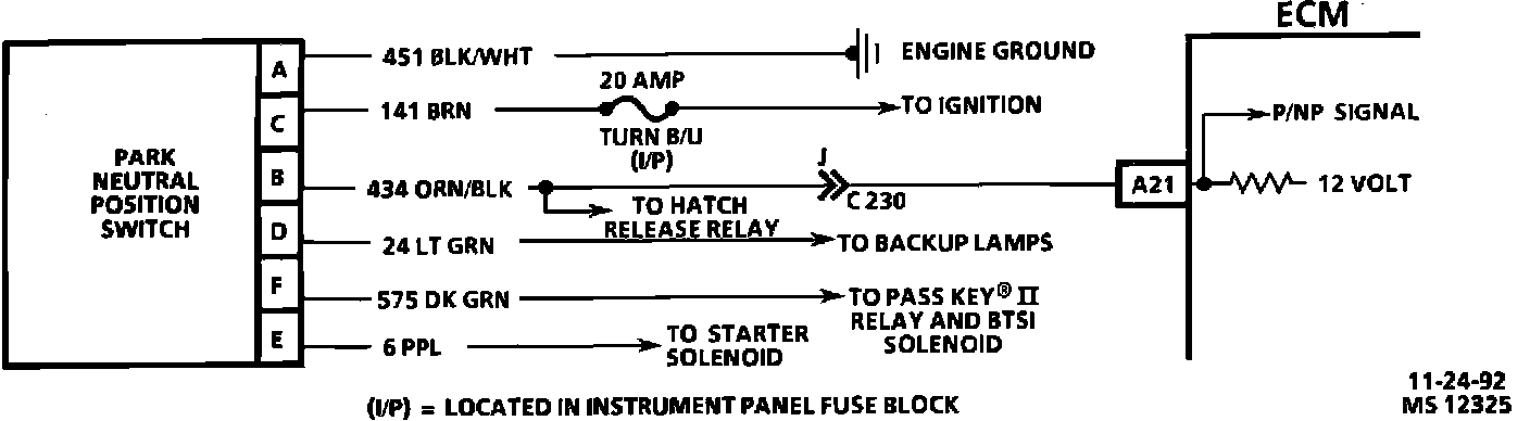Park/Neutral Position (PNP) Switch Circuit:
