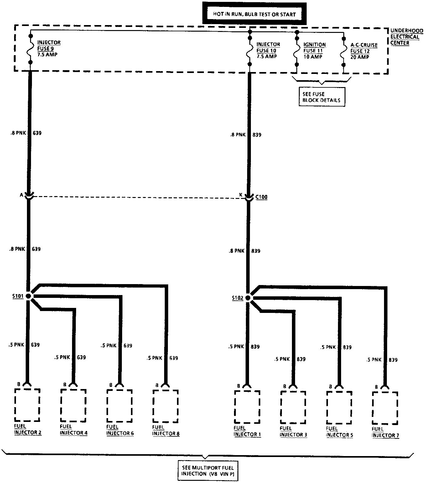 Underhood Fuses 8 & 10 (V8 VIN P):