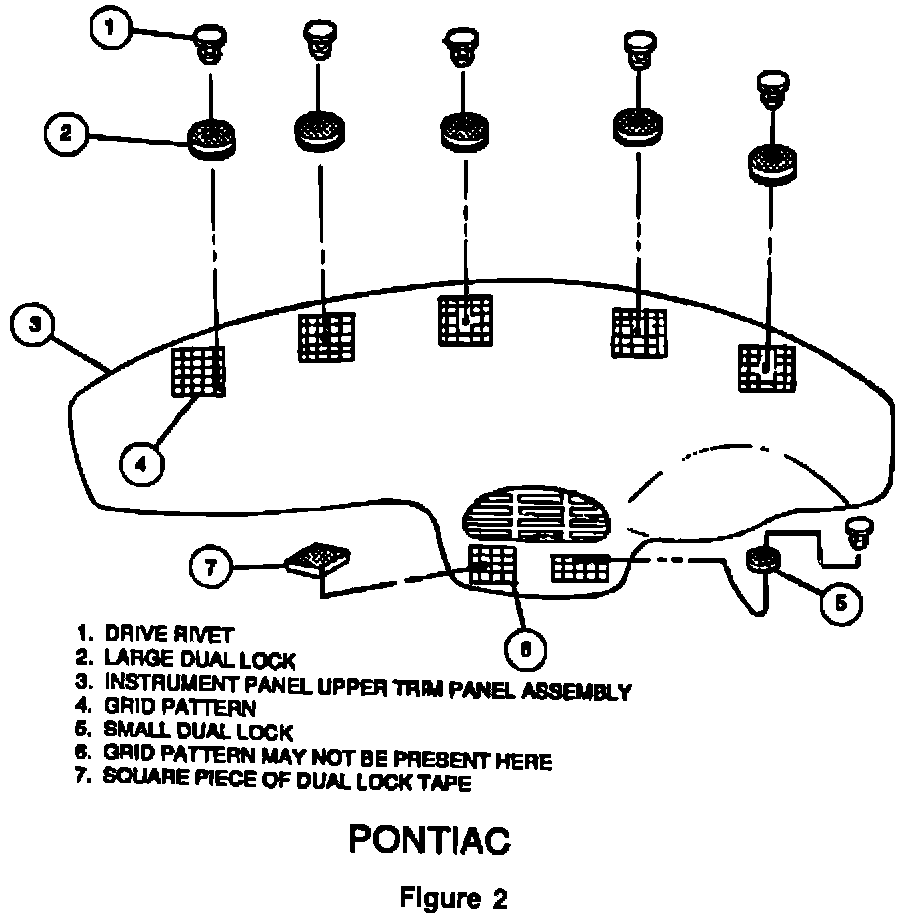 Some Pontiac Firebirds may not have a grid stand off as Illustrated at Location #6 in Figure 2. These vehicles may use a dual lock tape or nothing at this location.