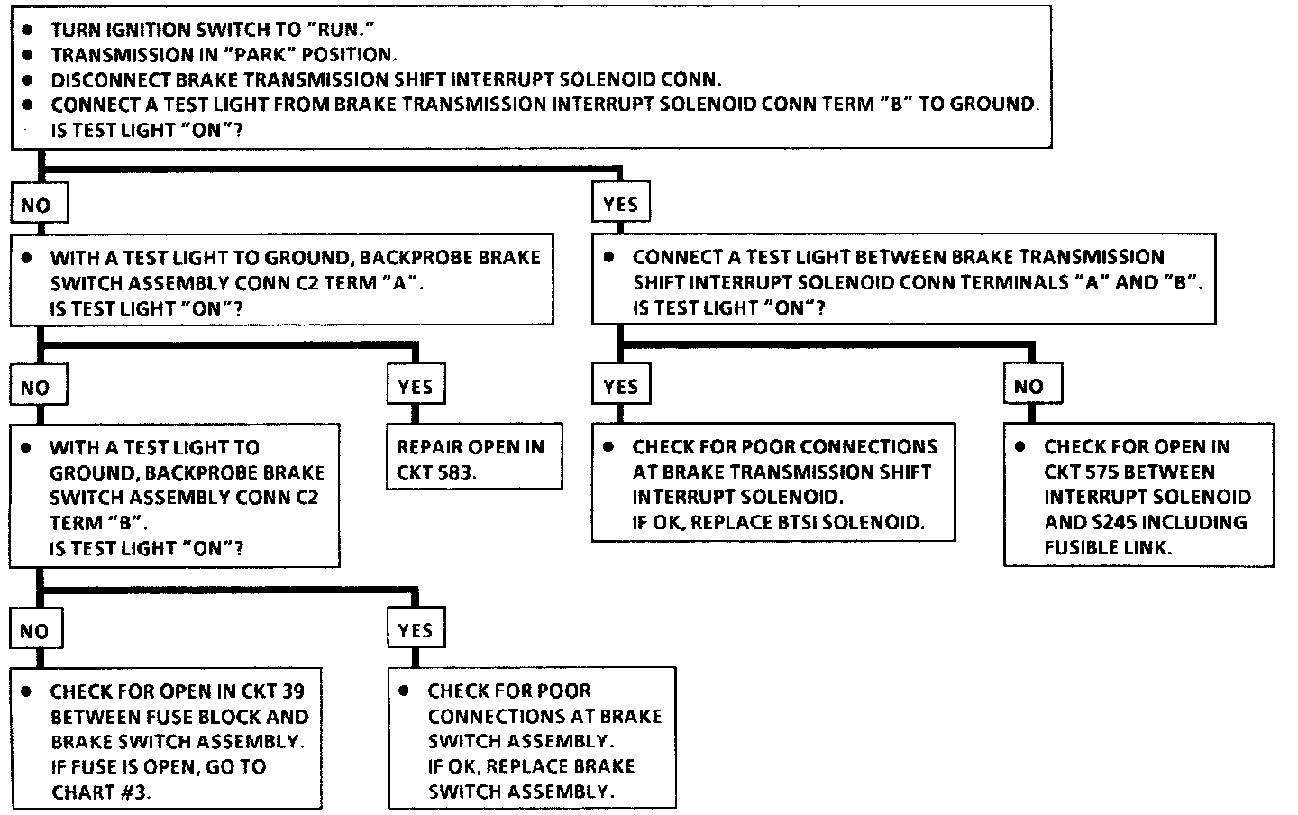 Chart #2: Transmission Shifts Out Of Park With Ignition Switch In Run & Brake Pedal Not Depressed: