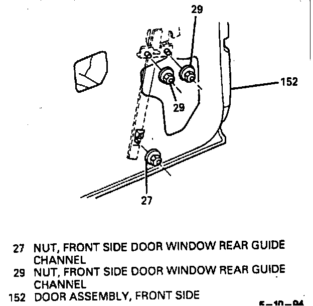 Removing Front Side Door Window Rear Guide Channel Nuts (Typical):