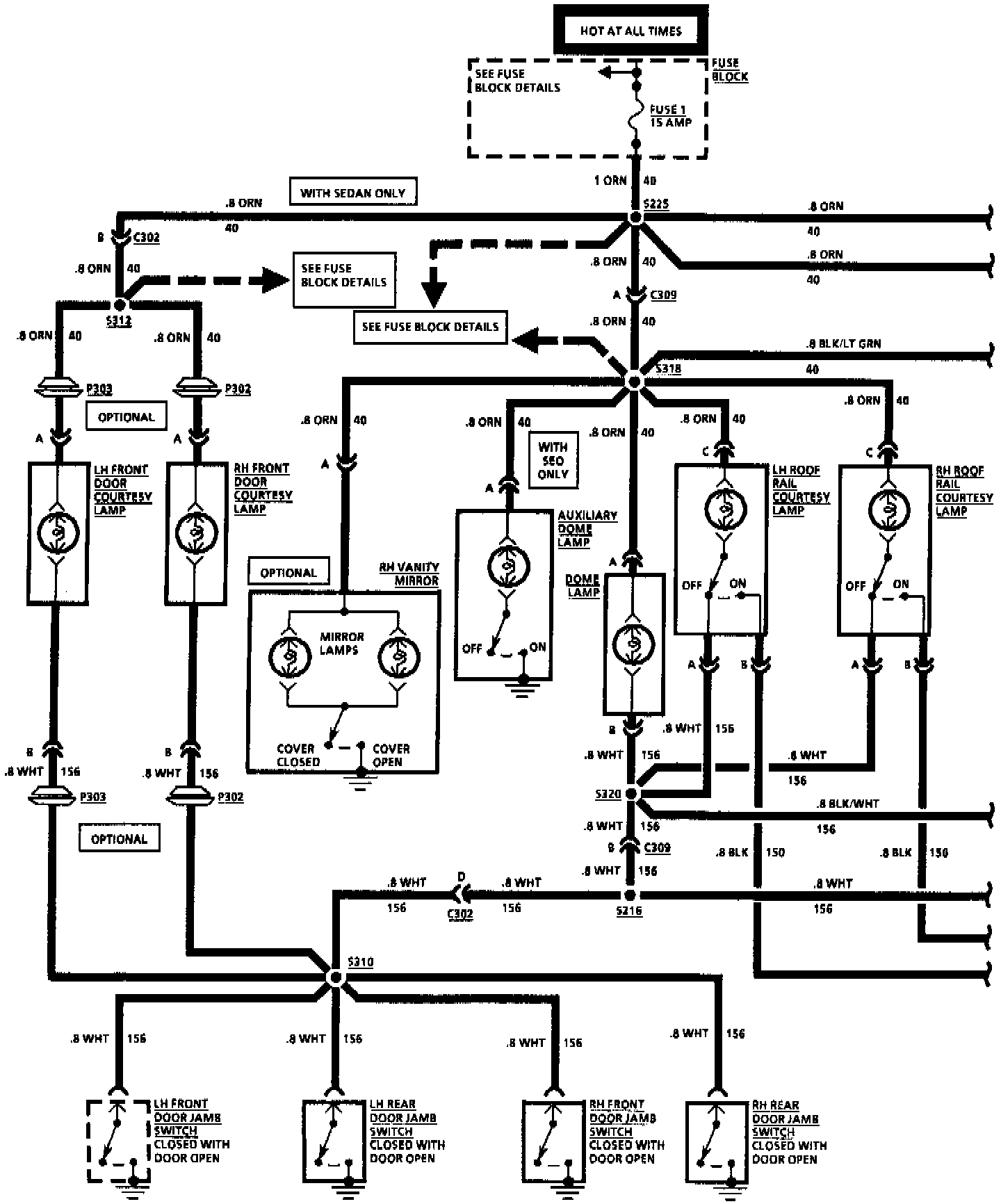 Interior Lights: Courtesy/Reading,Dome,RH Vanity Mirror Lights,Underhood Lamp: