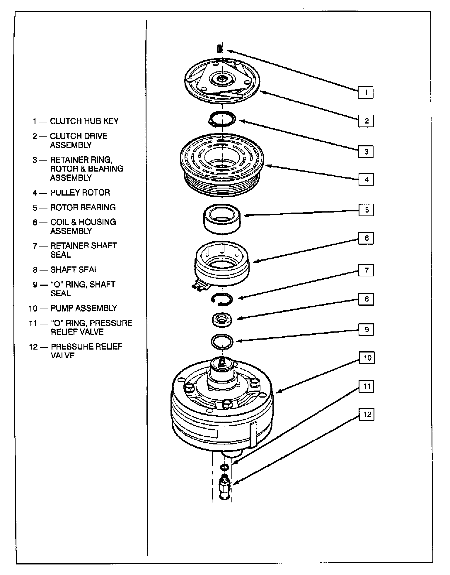 When replacing the shaft seal assembly or pressure relief valve, even if the compressor remains on the vehicle during the operation, it will be necessary to recover refrigerant. Other than clutch repair procedures, the same holds true for any disassembly of the compressor.