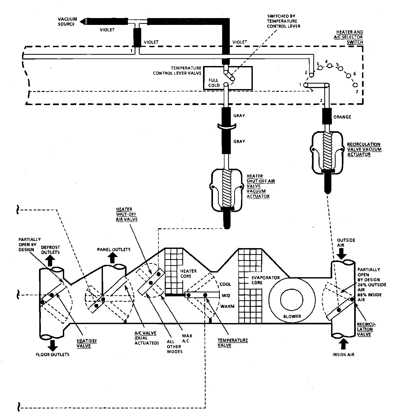 A/C & Heater Vacuum Circuit (Manual A/C):