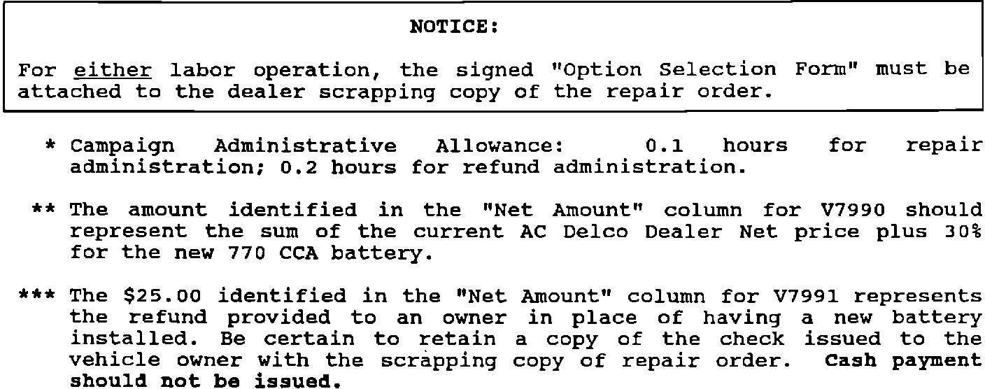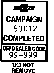 CAMPAIGN IDENTIFICATION LABELEach vehicle corrected in accordance with the instructions outlined in this Product Campaign Bulletin will require a "Campaign Identification Label." Each label provides a space to include the campaign number and the five (5) digit dealer code of the dealer performing the campaign service. This information may be inserted with a typewriter or a ball point pen.