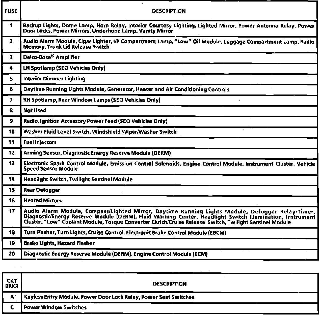 Fuse and Fusible Link Locations