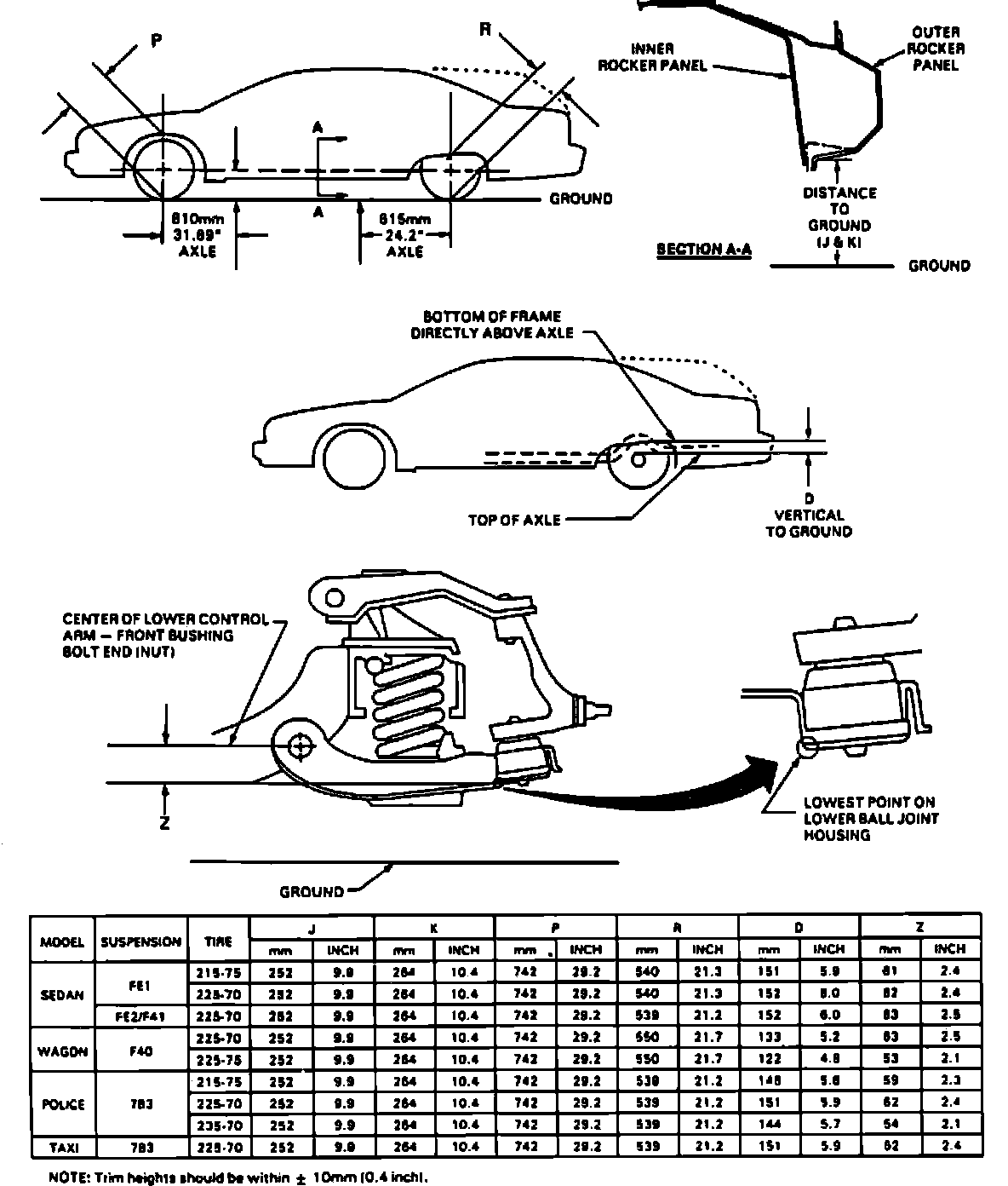 Fig. 5 Vehicle Riding Height Measurement Locations & Specifications. 1992: