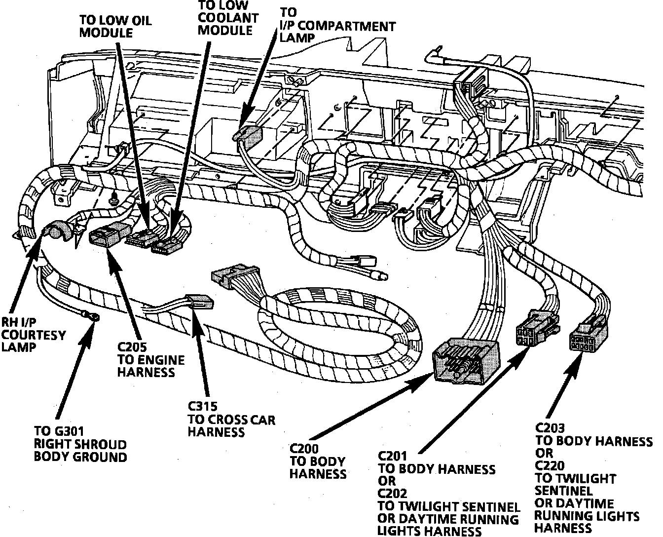 Component Location View. Rear View of RH Instrument Panel: