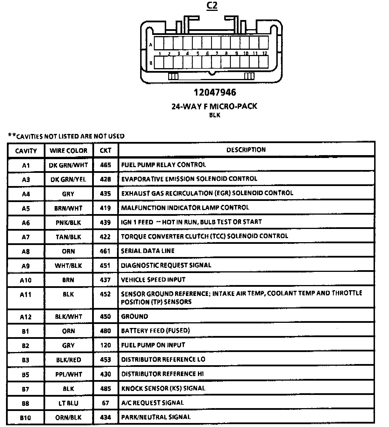 Throttle Body Injection: V8 VIN E And VIN 7 Engine Control Module (ECM) Connector Faces C2: