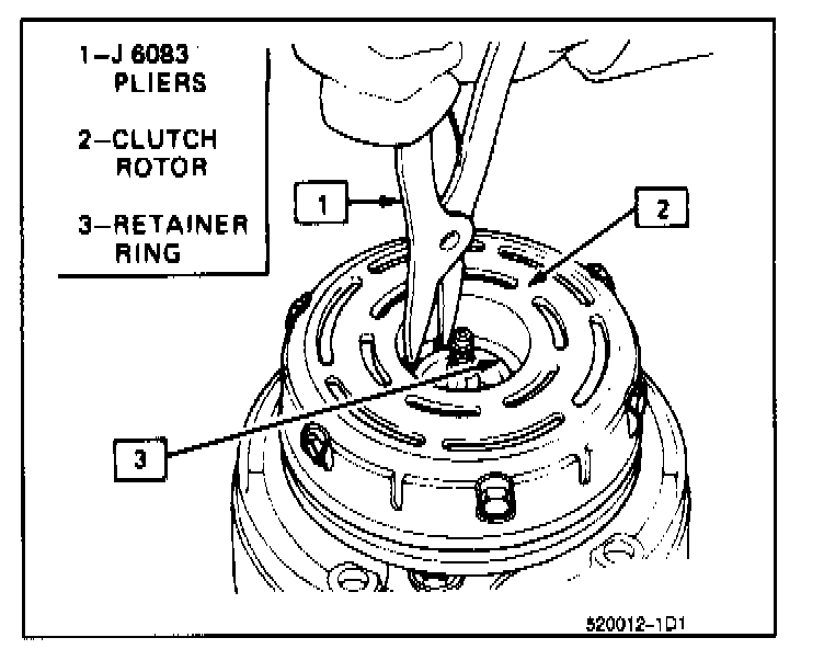 5. Install rotor and bearing assembly retainer ring, using Snap Ring Pliers J 6083.