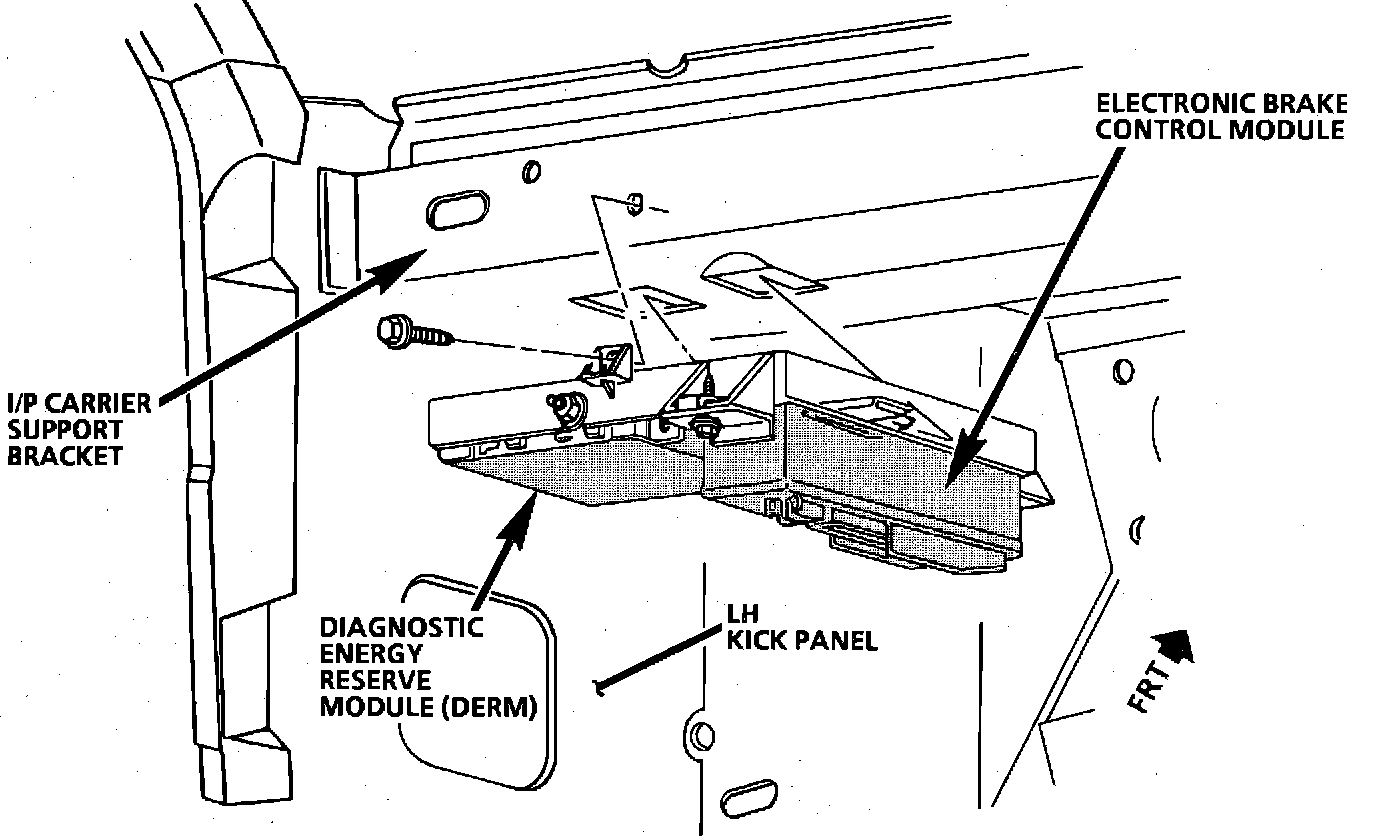 Component Location View. Behind LH I/P, Left of Brake Pedal Bracket: