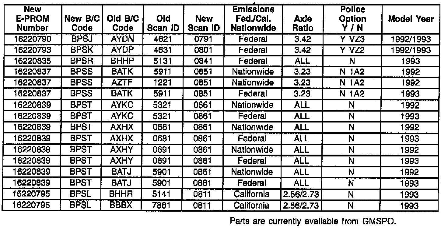 If all engine mechanical and electrical components are working properly, install the proper E-PROM listed from the table.