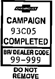 CAMPAIGN IDENTIFICATION LABELEach vehicle corrected in accordance with the instructions outlined in this Product Campaign Bulletin will require a "Campaign Identification Label." Each label provides a space to include the campaign number and the five (5) digit dealer code of the dealer performing the campaign service. This information may be inserted with a typewriter or a ball point pen.