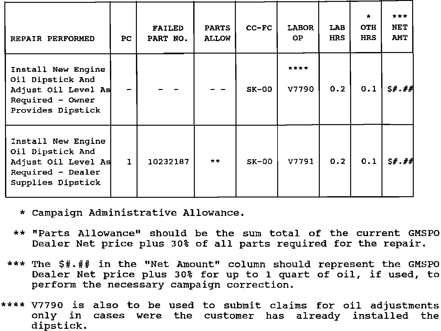 Dealers will automatically receive the correct labor and material allowance based on the labor operation performed.