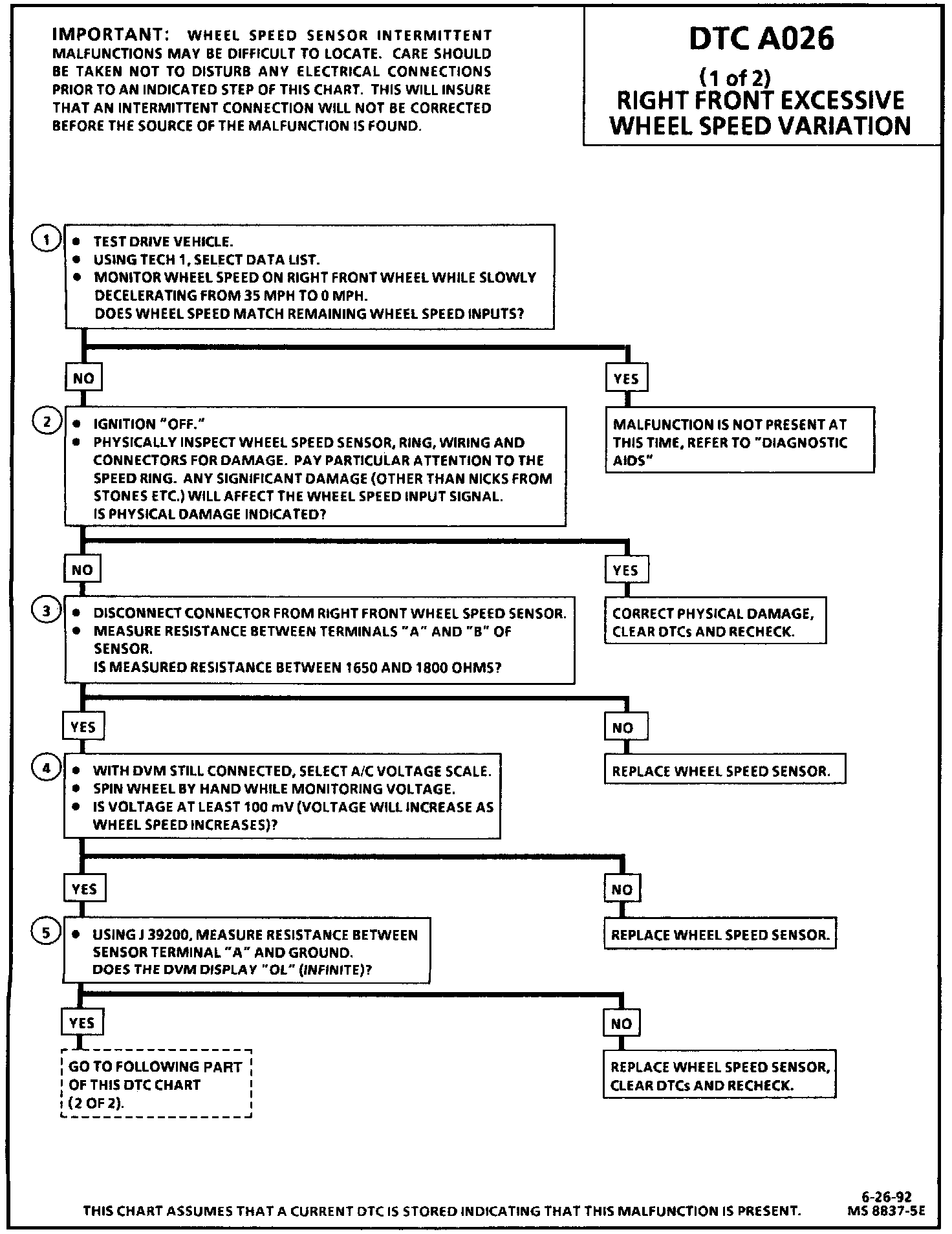 DTC A026 can be set when the brake is "OFF." The purpose of this test is to detect a situation in which the right front wheel acceleration or deceleration is beyond specified limits.