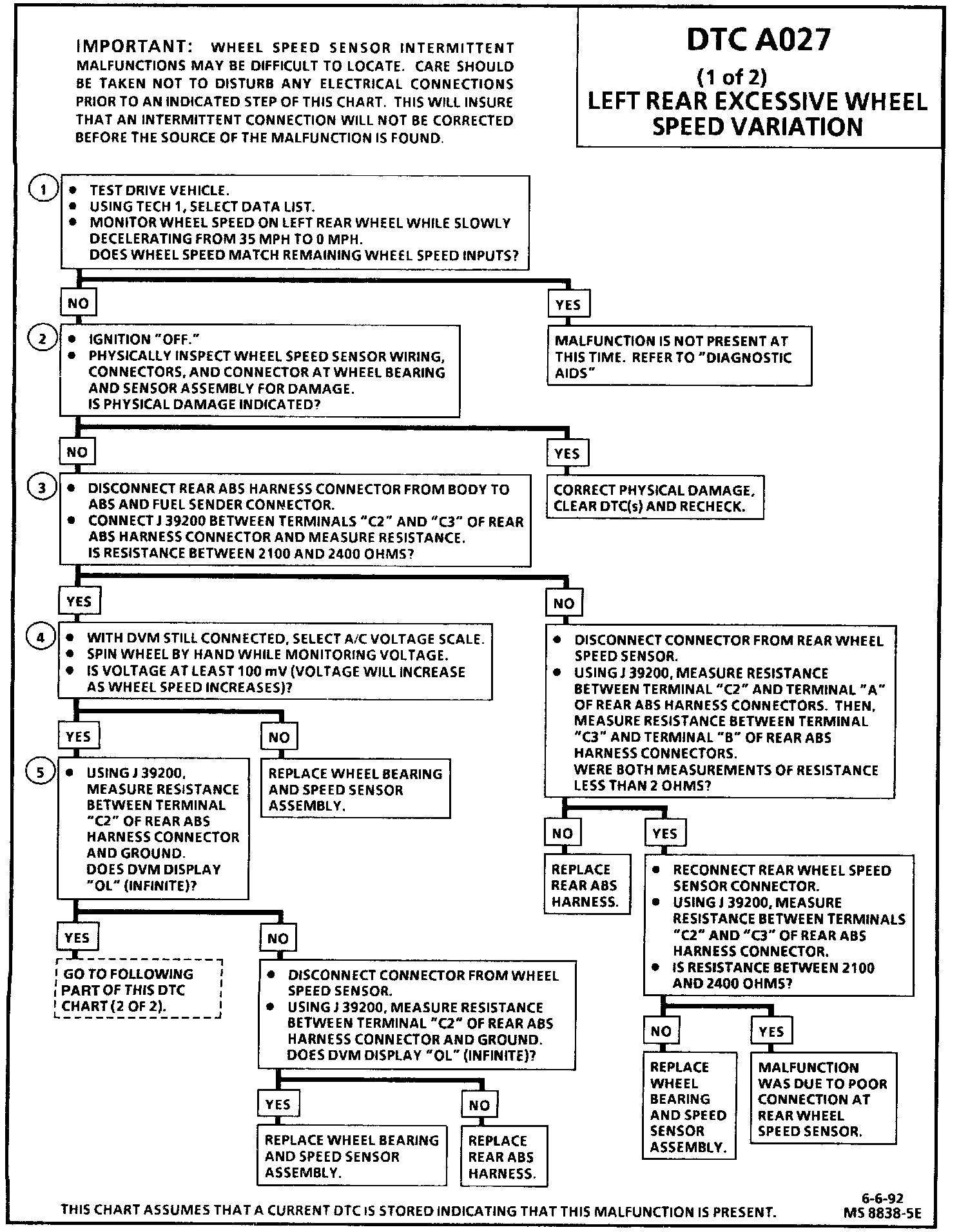 DTC A027 can be set when the brake is "OFF." The purpose of this test is to detect a situation in which the left rear wheel acceleration or deceleration is beyond specified limits.