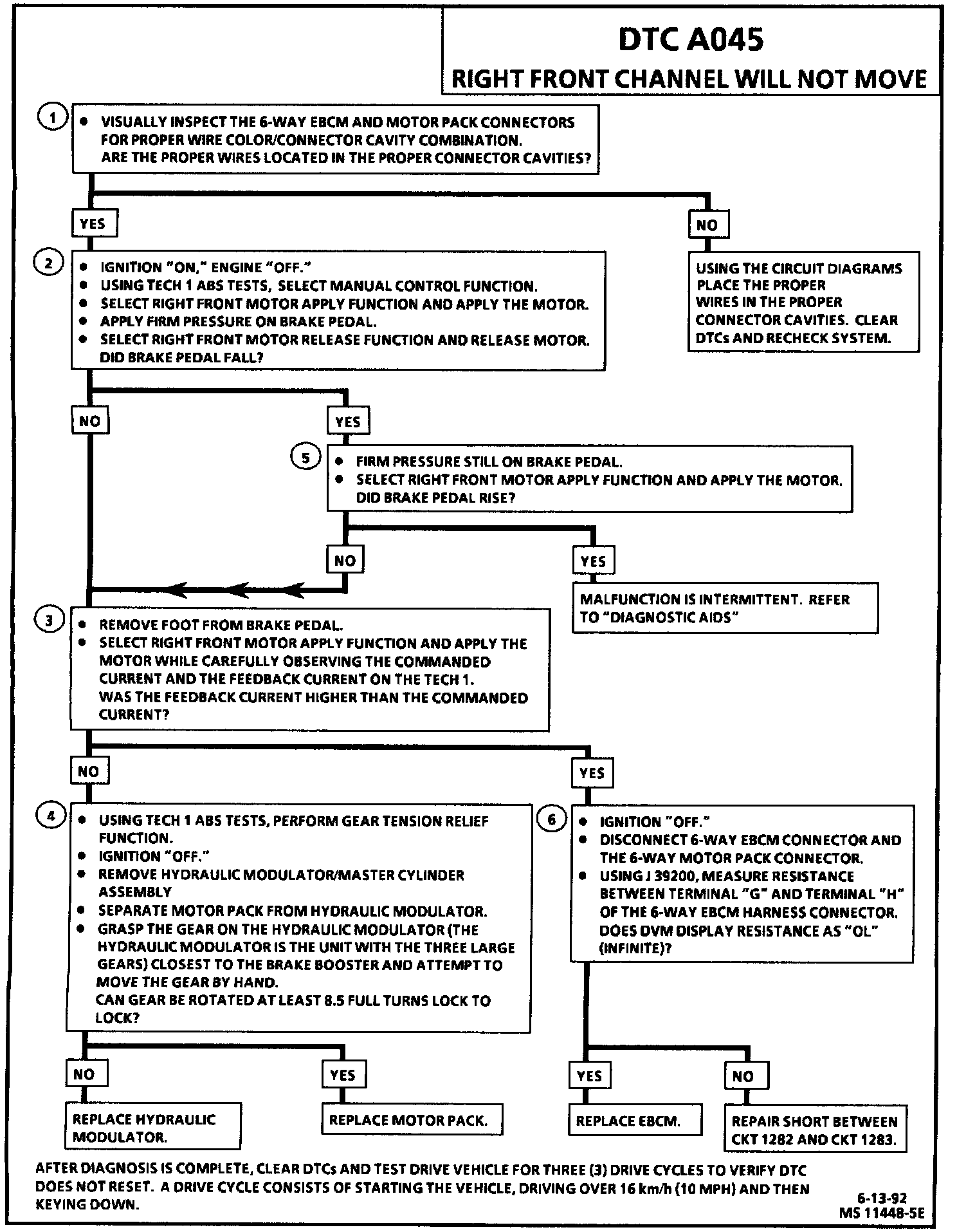 DTC A045 can be set at 5 km/h (3 mph). If the EBCM detects a condition in which it cannot move the motor in either direction, a malfunction exists.