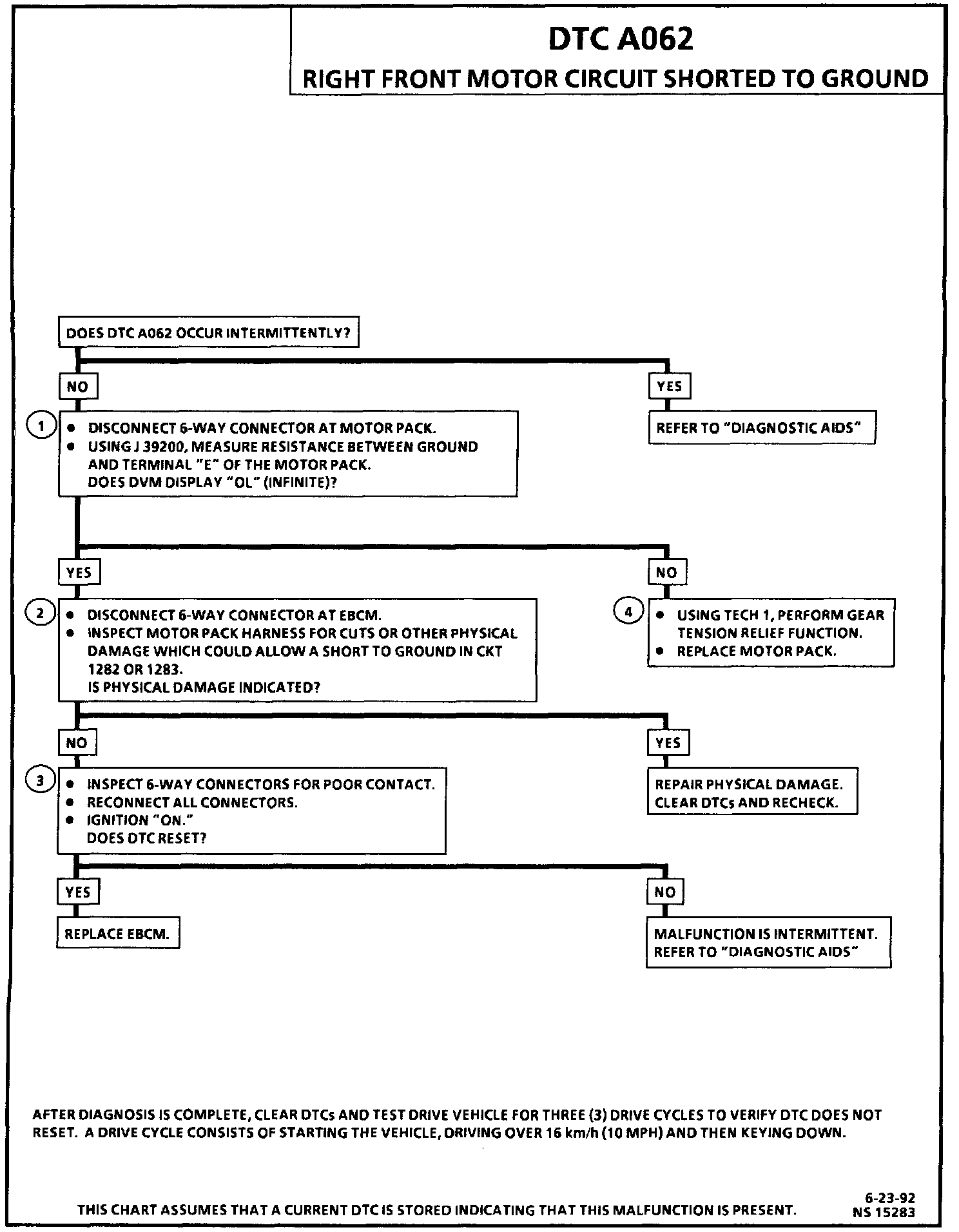 DTC A062 can be set anytime. If the EBCM detects an out of range voltage in either of the right front motor circuits indicating a circuit shorted to ground, a malfunction exists.